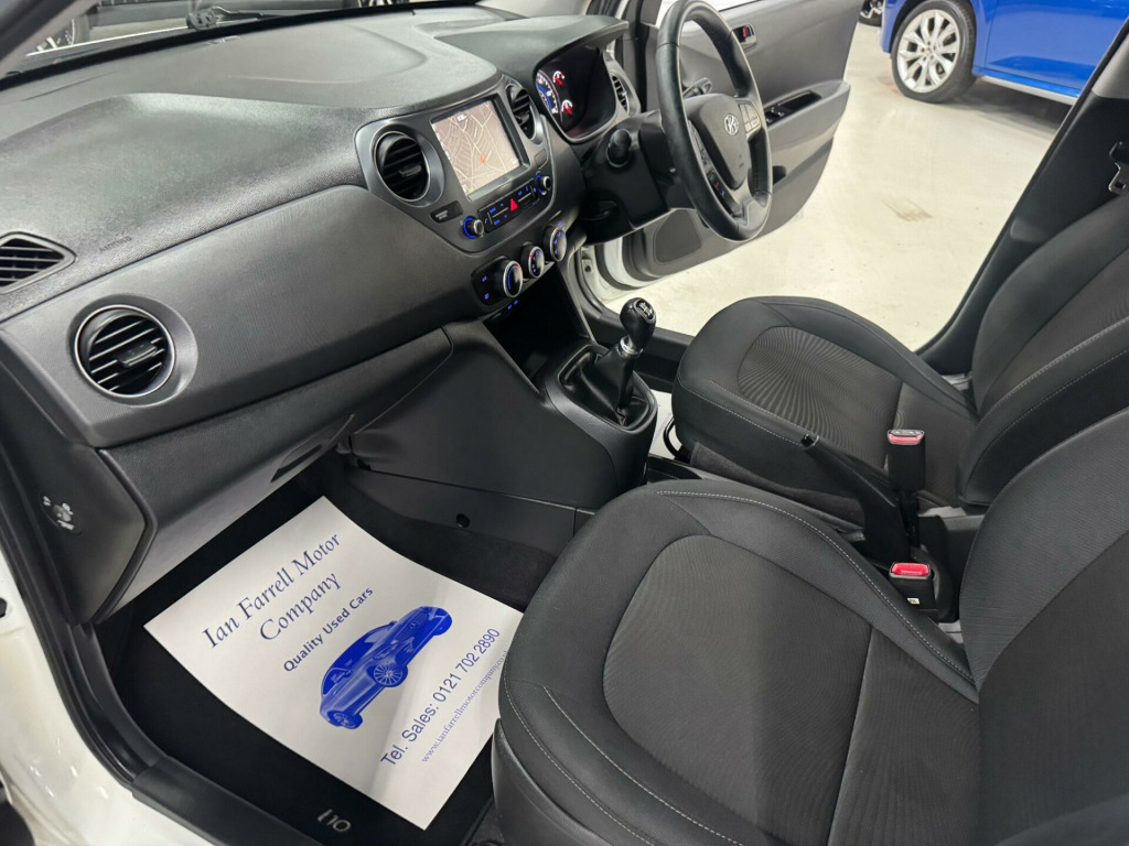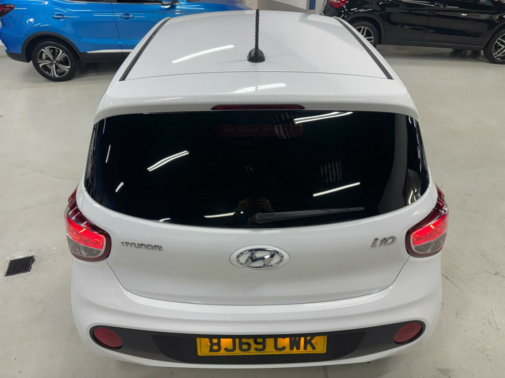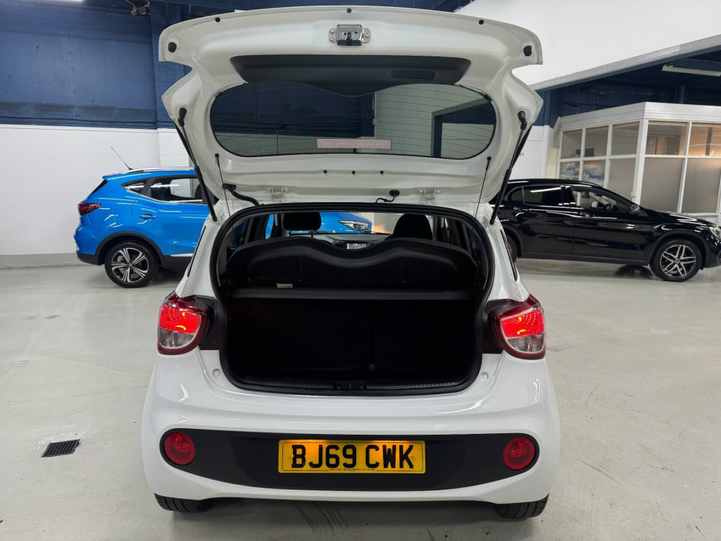 This 2019 Hyundai i10 Play boasts exceptionally low mileage for its age, having covered just 9700 miles, and comes with the reassurance of a full service history and a single owner from new. This Euro 6 compliant 1.0 litre petrol model is presented in excellent condition, offering a practical and economical choice for everyday driving. It features manual air conditioning for your comfort, along with seamless phone connectivity through both Apple CarPlay and Android Auto, ensuring you can stay connected on the go. Bluetooth connectivity is also included for easy audio streaming and hands free calls.The Hyundai i10 Play stands out with its low insurance group rating, making it an affordable option for many drivers. Furthermore, its low CO2 emissions highlight its efficiency and environmental consideration, setting it apart from many other vehicles in its class. To provide complete peace of mind, this vehicle will be supplied with 12 months MOT and a 3 month warranty on purchase, further underscoring its excellent value and readiness for its next owner.. 12V Power Outlet - Front Console, 15in Alloy Wheels, 7in Touchscreen Satellite Navigation including Traffic Messaging Channel - Mapcare and Live Services, ABS - Anti-Lock Brake System, Air Conditioning - Manual, Airbags - Front - Front Side and Curtain Airbags, Alarm - Thatcham Category 2, BAS - Brake Assist System, Black B Pillar, Bluetooth Connectivity, Bottle Holders - Front Centre Console - Front and Rear Doors, Bumpers - Body Coloured, Childproof Rear Door Locks, Cruise Control with Speed Limiter, DAB Digital Radio, Daytime Running Lights - Halogen, Door Mirrors - Black Gloss, Door Mirrors - Electric Folding - Electric Adjustment and Heated, Driver Seat Height Adjustment, ESP - Electronic Stability Programme, Electric Power Steering, Electric Windows - Front and Rear, Exterior Door Handles - Body Coloured, Front Passenger Airbag De-Activation Switch, Front Seatbelt Pre-Tensioners, Front Windscreen Wipers - Intermittent Function, Front and Rear Door Pockets, Front and Rear Seatbelt Reminder, Glove Compartment, Head Restraints - Vertical Adjustment - Rear, Head Restraints -Vertical Adjustment - Front, Height Adjustable Steering Column, ISOFIX Child Seat Anchorage Points - Rear, Immobiliser, Interior Light - Cabin and Luggage Compartment, Leather Wrapped Steering Wheel and Gear Knob, PLAY Badge - B Pillar x2, Phone Connection - Android Auto, Phone Connection - Apple CarPlay, Privacy Glass - Rear Windows and Tailgate, Rear Spoiler with Integrated Brake Light, Rear Windscreen Wiper - 1 Speed Non Intermittent, Remote Central Locking, Space Saver Emergency Spare Wheel, Speakers - 2 Front - 2 Rear, Speed and Impact Sensing Auto Door Unlocking, Split Folding Rear Seats - 60-40, Steering Wheel Audio and Phone Controls, Sun Visors with Driver and Passenger Vanity Mirrors, Trip Computer, Tyre Pressure Monitoring System - TPMS, USB and AUX Connections - Front, VSM - Vehicle Stability Management, Cloth - Black-Grey. Full service history
