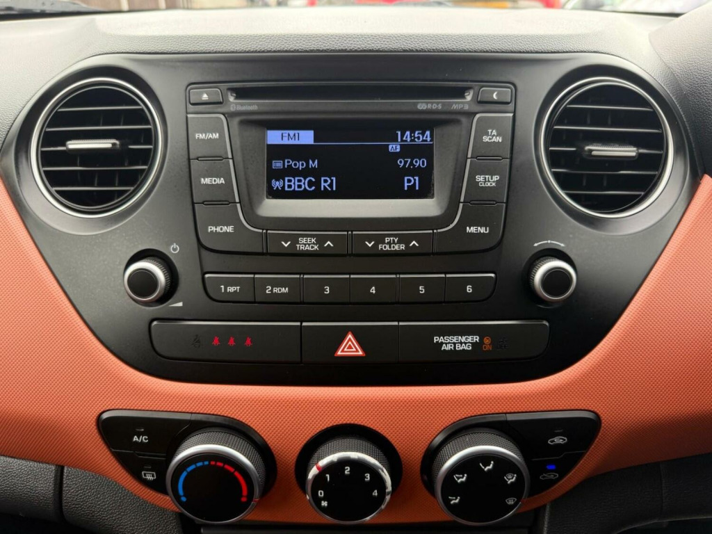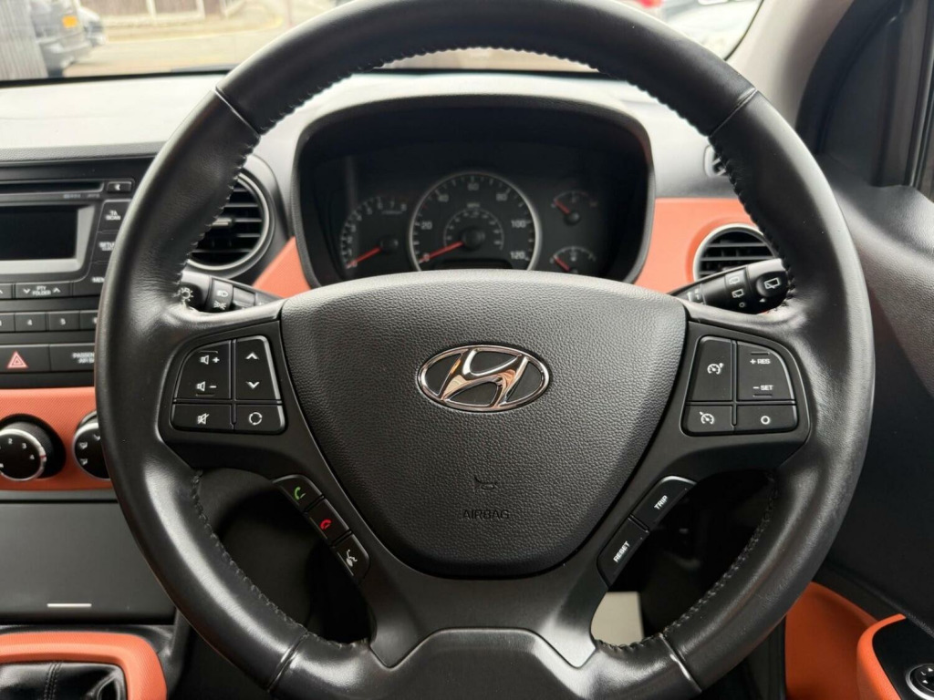 Hyundai I10 Premium, 1.0 petrol, 5 door hatchback in metallic mandarin orange. This vehicle is exceptionally low mileage at just 28,900 with a full service history present with stamps at 2k, 5k, 8k, 12k, 18k, 20k and then at 28k. Has a very long MOT with the next one being due on the 05/10/2026 with no advisory items present. One owner from new who has maintained the vehicle to an excellent standard. Very good condition throughout, clean bodywork and has a superb clean interior with no unpleasant smells. Very economical, is just £20 a year to tax and would make an ideal first car with this vehicle falling into a low insurance group. Has a very nice specification which includes remote central locking, alloy wheels, cloth upholstery, cup holders, cd/radio, LED daytime running lights, steering controls for audio, cruise control, electric windows, air conditioning, bluetooth and much more. This vehicle is HPI clear, the V5 is present and comes with two keys. Part exchange welcome, finance is available. We are located in Chilwell, Nottingham please call before travelling to visit us to check availability and make an appointment. A 3 months warranty is supplied with this vehicle and there is an option to upgrade to a 12 month Warranty Wise warranty for a small fee. Please speak to one of our sales advisors who will be happy to help.