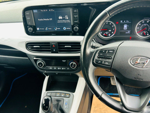 2022 Hyundai I10 Premium Auto- Has covered just 23k with full history - Can be supplied with 12 Months Mot - Top spec heated steering wheel heated seats- Extended Warranties Available - Finance Available - Part Exchange Welcome v power outlet - front console, bluetooth connectivity with voice recognition, centre console display - 8in touchscreen, e-call, speakers - 2 front - 2 rear, usb connectivity port - 1 front, wireless android auto, wireless apple carplay, 16in alloy wheels, black b pillar, body colour bumpers, door mirrors - body coloured, electric adjustment and heated door mirrors, electric windows - front and rear, exterior door handles - body coloured, front grille - glossy black, indicator lights - door mirror, privacy glass - rear side window and tailgate, rear spoiler with integrated brake light, tyre repair kit, abs - anti-lock brake system, aeb - autonomous emergency brake with forward collision warning system, airbags - front - front side and curtain airbags, alarm and immobiliser, bas - brake assist system, central locking - remote control, electronic stability control - esc, front passenger airbag de-activation switch, hac - hill-start assist control, rear windscreen wiper - 1 speed non intermittent, second remote key, air conditioning - climate control, bottle holders - front centre console - front and rear doors, drivers seat height adjustment - manual, front head restraints - vertical and horizontal adjustment, front windscreen wipers - intermittent function, glove compartment, head restraints - rear with vertical adjustment, heated front seats, heated steering wheel, height adjustable steering column, interior door handles - metal paint effect, interior light - cabin and luggage compartment, leather wrapped steering wheel and gear knob, split folding rear seats - 60-40, steering wheel with audio - phone and cruise controls, white design detail - dash and door, auto light control, daytime running lights - led, front fog lights, headlights - bi-function projection headlamps, high beam assist, cruise control with speed limiter, driver attention alert - daa, fca - forward collision avoidance assist, lane departure warning system with lane keeping assist, power assisted steering, rear-view parking camera, trip computer, tyre pressure monitoring system - tpms