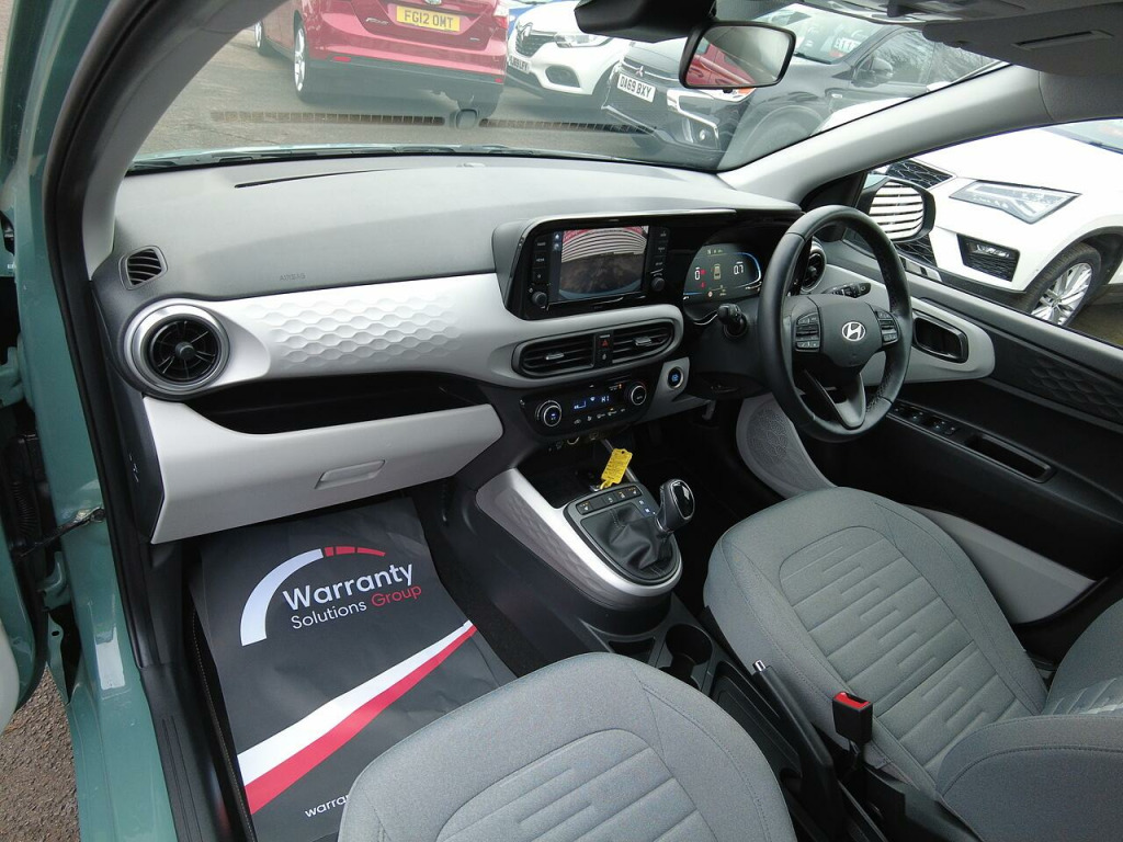 Balance of Hyundai 5 year warranty until January 2029. Only 6,946 miles by one private owner from new. High specification small Automatic with some great features including Alloy wheels, Rear privacy glass, Rear parking sensors, Reversing camera, Apple Car Play/Android Auto, Cruise control, Heated front seats, Automatic lights, Bluetooth plus much more.. Bluetooth Connectivity with Voice Recognition, Centre Console Display - 8in Touchscreen, E-Call, Front USB Ports - USB-C Charging - USB-A Data, Rear USB Port - USB-C Charging, Speakers - 2 Rear, Wireless Android Auto, Wireless Apple CarPlay, Wireless Charger - Phone, Cruise Control with Speed Limiter, Driver Attention Alert - DAA, FCA - Forward Collision Avoidance Assist, Lane Departure Warning System with Lane Keeping Assist, Rear Parking Sensors, Rear-View Parking Camera, Trip Computer, Tyre Pressure Monitoring System - TPMS, 16in Alloy Wheels, Body Colour Bumpers, Door Mirrors - Body Coloured, Door Mirrors - Electric Adjustment - Folding and Heated, Electric Windows - Front and Rear, Exterior Door Handles - Chrome, Flat Metal Hyundai Emblem, Front Grille, Indicator Lights - Door Mirror, Privacy Glass - Rear Side Window and Tailgate, Tyre Repair Kit, Daytime Running Lights - LED, Front Fog Lights, Headlights - Halogen Bi-Function, High Beam Assist, Air Conditioning - Climate Control, Blue LED Mood Lighting - Front, Floor Mats, Full-Width LCD Cluster Display with 4.2in, Heated Front Seats, Heated Steering Wheel, Leather Wrapped Steering Wheel and Gear Knob, Metallic Grey Dashboard Finisher with Meta Blue Air Vent Rings, Rear Occupancy Alert, Split Folding Rear Seats - 60-40, Steering Wheel with Audio - Phone and Cruise Controls, Intelligent Speed Limit Assist - ISLA, Power Assisted Steering, ABS - Anti-Lock Brake System, Airbags - Front - Front Side and Curtain Airbags, Alarm and Immobiliser, Front Passenger Airbag De-Activation Switch, HAC - Hill-Start Assist Control, Lane Follow Assist - LFA, Smart Key Fob with Keyless Entry and Keyless Start, Cloth - Shale Grey, Mangrove Green.