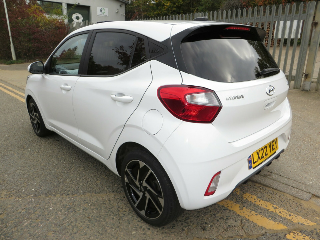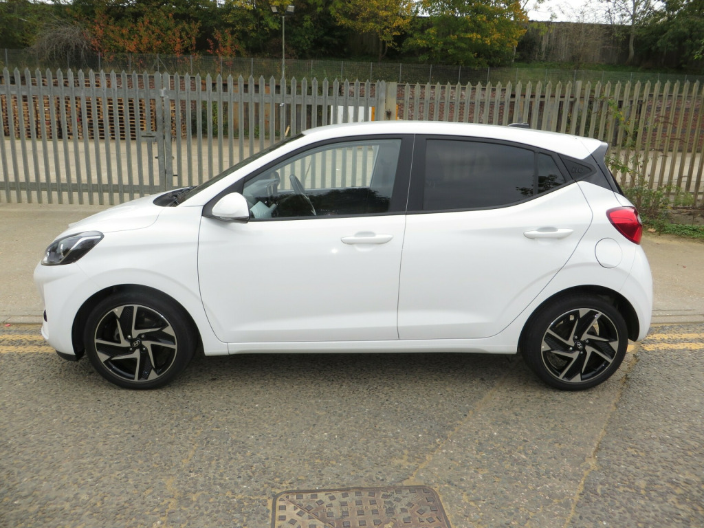 This 2022 Hyundai i10 1.0 Premium 5 Door Hatchback with only 12000 miles. The practical hatchback design offers 5 doors and 5 seats, making it perfect for daily use or family trips. Powered by a fuel-efficient petrol engine, this car is ULEZ compliant, ensuring it meets environmental standards. The MOT is valid until 07/03/2026, providing peace of mind for the future. Equipped with advanced features such as a Centre Console Display with an 8-inch touchscreen, Bluetooth Connectivity with Voice Recognition, E-Call, and 12V Power Outlet, this car offers a high-tech driving experience. With a Euro 6 (s/s) 67 ps manual transmission, this Hyundai i10 delivers a smooth and responsive ride, making it an ideal choice for drivers who value both style and performance. v power outlet - front console, bluetooth connectivity with voice recognition, centre console display - 8in touchscreen, e-call, speakers - 2 front - 2 rear, usb connectivity port - 1 front, wireless android auto, wireless apple carplay, 16in alloy wheels, black b pillar, body colour bumpers, door mirrors - body coloured, electric adjustment and heated door mirrors, electric windows - front and rear, exterior door handles - body coloured, front grille - glossy black, indicator lights - door mirror, privacy glass - rear side window and tailgate, rear spoiler with integrated brake light, tyre repair kit, abs - anti-lock brake system, aeb - autonomous emergency brake with forward collision warning system, airbags - front - front side and curtain airbags, alarm and immobiliser, bas - brake assist system, central locking - remote control, electronic stability control - esc, front passenger airbag de-activation switch, hac - hill-start assist control, rear windscreen wiper - 1 speed non intermittent, second remote key, air conditioning - climate control, bottle holders - front centre console - front and rear doors, drivers seat height adjustment - manual, front head restraints - vertical and horizontal adjustment, front windscreen wipers - intermittent function, glove compartment, head restraints - rear with vertical adjustment, heated front seats, heated steering wheel, height adjustable steering column, interior door handles - metal paint effect, interior light - cabin and luggage compartment, leather wrapped steering wheel and gear knob, split folding rear seats - 60-40, steering wheel with audio - phone and cruise controls, white design detail - dash and door, auto light control, daytime running lights - led, front fog lights, headlights - bi-function projection headlamps, high beam assist, cruise control with speed limiter, driver attention alert - daa, fca - forward collision avoidance assist, lane departure warning system with lane keeping assist, power assisted steering, rear-view parking camera, trip computer, tyre pressure monitoring system - tpms