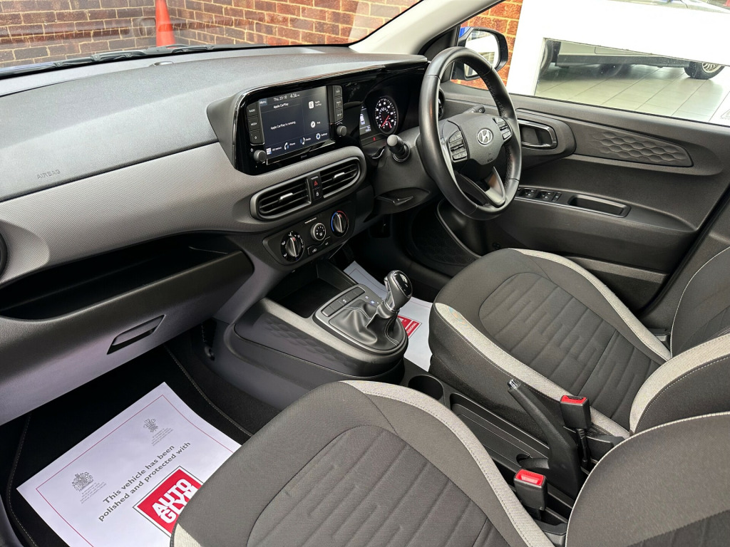 This 2023 Hyundai i10 1.0 SE Connect Hatchback with an automatic transmission and Euro 6 compliant petrol engine is the ideal vehicle for city driving, with only 17035 miles on the clock and ULEZ compliance. With 5 seats and 5 doors, this compact yet spacious hatchback is perfect for families or individuals looking for a reliable and stylish car. The sleek design is complemented by a range of features including a 8in touchscreen centre console display, Bluetooth connectivity with voice recognition, e-call, and 2 front and 2 rear speakers for great sound quality. With a 12V power outlet in the front console, this car is both practical and convenient for everyday use. Don't miss out on this efficient and well-equipped Hyundai. v power outlet - front console, bluetooth connectivity with voice recognition, centre console display - 8in touchscreen, e-call, speakers - 2 front - 2 rear, usb connectivity port - 1 front, wireless android auto, wireless apple carplay, 15in alloy wheels, black b pillar, body colour bumpers, door mirrors - body coloured, electric adjustment and heated door mirrors, electric windows - front and rear, exterior door handles - body coloured, front grille - matte black, indicator lights - door mirror, rear spoiler with integrated brake light, tyre repair kit, abs - anti-lock brake system, aeb - autonomous emergency brake with forward collision warning system, airbags - front - front side and curtain airbags, alarm and immobiliser, bas - brake assist system, central locking - remote control, electronic stability control - esc, front passenger airbag de-activation switch, hac - hill-start assist control, rear windscreen wiper - 1 speed non intermittent, second remote key, air conditioning - manual, bottle holders - front centre console - front and rear doors, drivers seat height adjustment - manual, front head restraints - vertical and horizontal adjustment, front windscreen wipers - intermittent function, glove compartment, head restraints - rear with vertical adjustment, height adjustable steering column, interior door handles - metal paint effect, interior light - cabin and luggage compartment, leather wrapped steering wheel and gear knob, split folding rear seats - 60-40, steering wheel with audio - phone and cruise controls, auto light control, daytime running lights - halogen, headlights - halogen, high beam assist, cruise control with speed limiter, driver attention alert - daa, fca - forward collision avoidance assist, lane departure warning system with lane keeping assist, power assisted steering, rear-view parking camera, trip computer, tyre pressure monitoring system - tpms