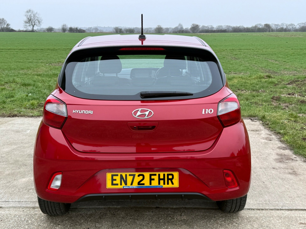 Here at Whitehart Service Station we are delighted to offer this 1 private owner from new 2023 ''72'' Hyundai i10 SE Connect 5 door, fitted with the 1.0 petrol engine, finished in Metallic Dragon Red with only 53952 miles and a Full Service History. It features a Reversing Camera for easy parking, DAB radio and Bluetooth for seamless connectivity, Apple CarPlay and Android Auto to keep you connected on the go. Cruise Control makes longer journeys more comfortable, Alloy wheels. Air Conditioning ensures a comfortable cabin in all seasons, making this i10 a perfect combination of convenience, technology, and economy. If you have any questions, please call the showroom on 01702 202202 or Stuart direct on 07814 001598 v power outlet - front console, bluetooth connectivity with voice recognition, centre console display - 8in touchscreen, e-call, speakers - 2 front - 2 rear, usb connectivity port - 1 front, wireless android auto, wireless apple carplay, 15in alloy wheels, black b pillar, body colour bumpers, door mirrors - body coloured, electric adjustment and heated door mirrors, electric windows - front and rear, exterior door handles - body coloured, front grille - matte black, indicator lights - door mirror, rear spoiler with integrated brake light, tyre repair kit, abs - anti-lock brake system, aeb - autonomous emergency brake with forward collision warning system, airbags - front - front side and curtain airbags, alarm and immobiliser, bas - brake assist system, central locking - remote control, electronic stability control - esc, front passenger airbag de-activation switch, hac - hill-start assist control, rear windscreen wiper - 1 speed non intermittent, second remote key, air conditioning - manual, bottle holders - front centre console - front and rear doors, drivers seat height adjustment - manual, front head restraints - vertical and horizontal adjustment, front windscreen wipers - intermittent function, glove compartment, head restraints - rear with vertical adjustment, height adjustable steering column, interior door handles - metal paint effect, interior light - cabin and luggage compartment, leather wrapped steering wheel and gear knob, split folding rear seats - 60-40, steering wheel with audio - phone and cruise controls, auto light control, daytime running lights - halogen, headlights - halogen, high beam assist, cruise control with speed limiter, driver attention alert - daa, fca - forward collision avoidance assist, lane departure warning system with lane keeping assist, power assisted steering, rear-view parking camera, trip computer, tyre pressure monitoring system - tpms