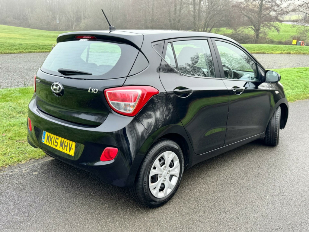 e are pleased to be presenting this 2015 Hyundai i10 1.0 SE Euro 5 5dr, finished in black and having covered 48,000 miles from new. This example has had 2 owners and comes with 6 services recorded. As part of our pre-sale preparation, we have replaced the clutch.Running costs are very low with ULEZ compliance, £20 annual road tax, around 60 MPG combined, and a low insurance group of 1A.Being the SE trim, it comes equipped with air conditioning, electric front windows, remote central locking and a cruise control! Easy-to-use interior layout.As with all our vehicles, this Hyundai has been treated to a multi-stage valet using the best products Auto Glym have to offer. Every car we handle receives, at minimum, a service as part of our pre-sale preparation. Supplied with 12 months MOT without advisory, our complimentary 3-month warranty, 12 months free AA breakdown cover, and 2 keys.Please do not hesitate to get in touch via Text, Call or Email at any time to arrange a viewing and test drive. Viewing available by appointment only. To find out more about us, head to WWW.QWERTY-AUTOMOTIVE.CO.UK. Whilst every effort has been made to ensure the accuracy of the above information, sometimes errors may occur please check with a salesperson. v power outlet - front x2, 14in steel wheels, abs - anti-lock brake system, adjustable head restraints, air conditioning, airbags - driver, airbags - front passenger, airbags - front side, airbags - full length curtain, bas - brake assist system, bottle holders - front centre console and door, bottle holders - rear door, childproof rear door locks, cruise control with speed limiter, daytime running lights, door courtesy lights, door handles - body coloured, door mirrors - body coloured, driver seat height adjustment, driver and passenger sun visor with ticket holder, esp - electronic stability programme, electric adjustment and heated door mirrors, electric windows - front and rear, front door pockets, front passenger airbag de-activation switch, front and rear seatbelt reminder, height adjustable steering column, isofix child seat anchorage points - rear - outer rear, immobiliser, luggage compartment light, one touch down drivers window control, power assisted steering, rds radio-cd player with mp3 compatibility, rear door pockets, rear spoiler with integrated brake light, remote central locking, speakers x2, speed sensitive automatic door locking, split folding rear seats - 60-40, sun visors with vanity mirrors, trip computer, tyre pressure monitoring system - tpms, tyre repair kit, usb and aux connections