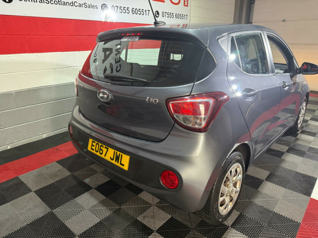Discover this exceptional 2017 Hyundai i10 SE with remarkably low mileage, having covered just 21080 miles. This well maintained example is powered by an efficient 1.0L petrol engine, meeting Euro 6 emission standards. Inside, you'll appreciate the convenience of manual air conditioning to keep you comfortable in all conditions, and Bluetooth connectivity for seamless handsfree calls and music streaming.This Hyundai i10 SE offers significant advantages over other vehicles in its class. Its impressive fuel economy of 60 mpg means fewer trips to the petrol station, saving you money. Furthermore, its low insurance group rating contributes to lower running costs, making it an economical choice. The low CO2 emissions also highlight its environmental consideration. oth - black-grey, cloth - blue-black, 12v power outlet - front console, 14in steel wheels, abs - anti-lock brake system, air conditioning - manual, airbags - front - front side and curtain airbags, alarm - thatcham category 2, bas - brake assist system, black b pillar, bluetooth connectivity, body coloured door handles and mirrors, bottle holders - front centre console - front and rear doors, bumpers - body coloured, childproof rear door locks, cruise control with speed limiter, dab digital radio, daytime running lights - halogen, door mirrors - electric folding - electric adjustment and heated, driver seat height adjustment, esp - electronic stability programme, electric power steering, electric windows - front and rear, front passenger airbag de-activation switch, front seatbelt pre-tensioners, front and rear door pockets, front and rear seatbelt reminder, glove compartment, head restraints - vertical adjustment - rear, head restraints -vertical adjustment - front, height adjustable steering column, isofix child seat anchorage points - rear, immobiliser, interior light - cabin and luggage compartment, intermittent front windscreen wipers - 2 speed non variable, rear spoiler with integrated brake light, rear windscreen wiper - 1 speed non intermittent, remote central locking, space saver emergency spare wheel, speakers - 2 front - 2 rear, speed and impact sensing auto door unlocking, split folding rear seats - 60-40, steering wheel audio and phone controls, stereo rds radio with mp3 compatibility, sun visors with driver and passenger vanity mirrors, trip computer, tyre pressure monitoring system - tpms, usb and aux connections - front, vsm - vehicle stability management