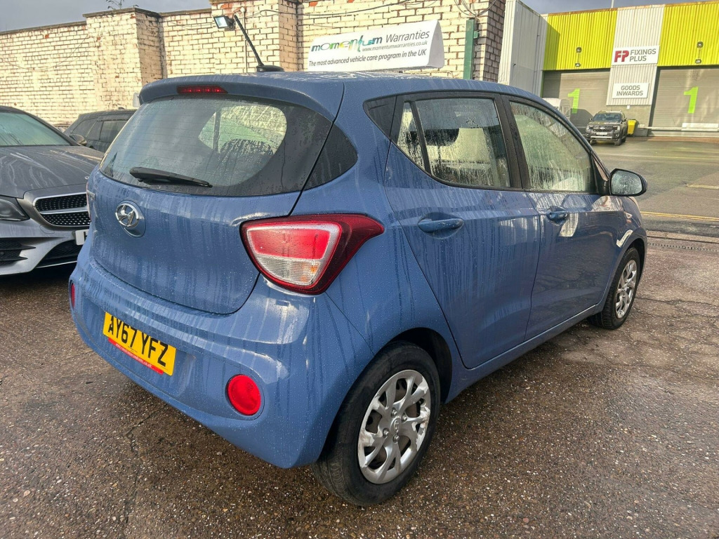 Discover this 2017 Hyundai i10 SE, a well maintained example ready for its next owner. This compact car is powered by an efficient 1.0 litre petrol engine, meeting Euro 6 emission standards. Inside, you'll find practical features designed for everyday convenience, including manual air conditioning to keep you comfortable and Bluetooth connectivity for seamless phone integration and audio streaming.This Hyundai i10 SE offers excellent running costs, achieving an impressive fuel economy of up to 60 miles per gallon. Its low CO2 emissions further contribute to its affordability and environmental consideration. Additionally, this model falls into a low insurance group, making it a cost effective choice for many drivers. These highlights demonstrate how this i10 stands out for its economy and accessibility. oth - black-grey, 12v power outlet - front console, 14in steel wheels, abs - anti-lock brake system, air conditioning - manual, airbags - front - front side and curtain airbags, alarm - thatcham category 2, bas - brake assist system, black b pillar, bluetooth connectivity, body coloured door handles and mirrors, bottle holders - front centre console - front and rear doors, bumpers - body coloured, childproof rear door locks, cruise control with speed limiter, dab digital radio, daytime running lights - halogen, door mirrors - electric folding - electric adjustment and heated, driver seat height adjustment, esp - electronic stability programme, electric power steering, electric windows - front and rear, front passenger airbag de-activation switch, front seatbelt pre-tensioners, front and rear door pockets, front and rear seatbelt reminder, glove compartment, head restraints - vertical adjustment - rear, head restraints -vertical adjustment - front, height adjustable steering column, isofix child seat anchorage points - rear, immobiliser, interior light - cabin and luggage compartment, intermittent front windscreen wipers - 2 speed non variable, rear spoiler with integrated brake light, rear windscreen wiper - 1 speed non intermittent, remote central locking, space saver emergency spare wheel, speakers - 2 front - 2 rear, speed and impact sensing auto door unlocking, split folding rear seats - 60-40, steering wheel audio and phone controls, stereo rds radio with mp3 compatibility, sun visors with driver and passenger vanity mirrors, trip computer, tyre pressure monitoring system - tpms, usb and aux connections - front, vsm - vehicle stability management