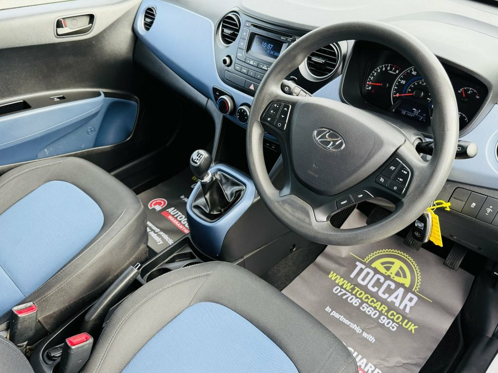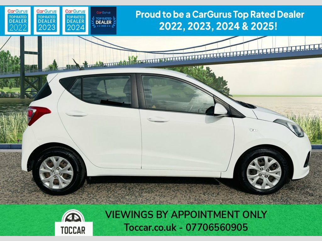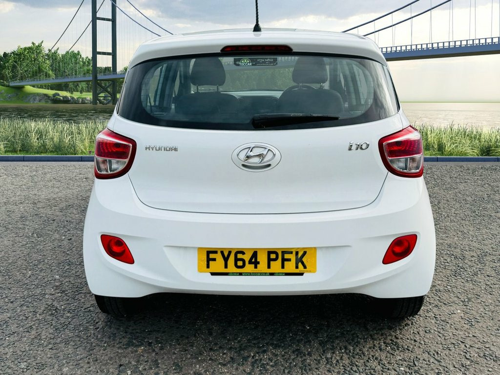 We are pleased to offer this Hyundai I10 1.0 SE 5dr 66 ps in White. The car is in excellent condition both inside and out with low mileage. A popular choice as a second car. Only £20 Annual Road Tax. The specification includes:- Air Conditioning, Radio/CD/MP3 compatibility, USB & AUX, Cruise Control, Electrically Adjustable Heated Door Mirrors, Daytime Running Lights, Electric Windows and Remote Central Locking. We will supply this car with an MOT (no advisories) and service carried out by an approved service centre. For further peace of mind Autoguard nationwide warranties are available to purchase. Part Exchange welcome. Viewing by appointment please. Finance available. Please see our wide selection of quality cars at www.toccar.co.uk 12V Power Outlet - Front x2, RDS Radio-CD Player with MP3 Compatibili, Speakers x2, USB and AUX Connections, 14in Steel Wheels, Door Handles - Body Coloured, Door Mirrors - Body Coloured, Electric Adjustment and Heated Door Mirr, Electric Windows - Front and Rear, One Touch Down Drivers Window Control, Rear Spoiler with Integrated Brake Light, Tyre Repair Kit, Adjustable Head Restraints, Air Conditioning, Bottle Holders - Front Centre Console an, Bottle Holders - Rear Door, Door Courtesy Lights, Driver and Passenger Sun Visor with Tick, Driver Seat Height Adjustment, Front Door Pockets, Height Adjustable Steering Column, Luggage Compartment Light, Rear Door Pockets, Split Folding Rear Seats