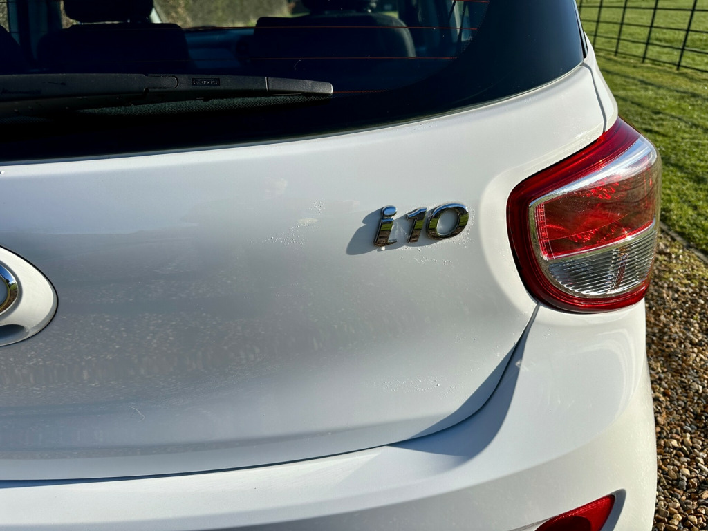 Here we have a fabulous low mileage example of the popular little Hyundai I-10 SE presented in Solid Crystal White with contrasting Black/Blue cloth upholstery. HPI clear this high specification local car has been lovingly cared for throughout and looks absolutely fantastic in this colour combination. It comes with full Service history, ( all hard copy invoices included!! ) , low RFL (only £20.00 per annum !!) , all books and both keys representing excellent value for money for such a clean example with great provenance.Good luck with your search, thank you for viewing this car. * NOW SOLD * v power outlet - front x2, rds radio-cd player with mp3 compatibility, speakers x2, usb and aux connections, 15in steel wheels, black b pillar, door handles - body coloured, door mirrors - body coloured, electric adjustment and heated door mirrors, electric windows - front and rear, one touch down drivers window control, rear spoiler with integrated brake light, space saver emergency spare wheel, abs - anti-lock brake system, airbags - driver, airbags - front passenger, airbags - front side, airbags - full length curtain, bas - brake assist system, childproof rear door locks, esp - electronic stability programme, front passenger airbag de-activation switch, front seatbelt electric type pretensioners, front and rear seatbelt reminder, isofix child seat anchorage points - rear - outer rear, immobiliser, remote central locking, speed sensitive automatic door locking, vsm - vehicle stability management, adjustable head restraints, air conditioning, bottle holders - front centre console and door, bottle holders - rear door, courtesy lights, driver seat height adjustment, driver and passenger sun visor with ticket holder, front door pockets, height adjustable steering column, intermittent front windscreen wipers - 2 speed non variable, luggage compartment light, rear door pockets, split folding rear seats - 60-40, sun visors with driver and passenger vanity mirrors, cruise control with speed limiter, power assisted steering, trip computer, tyre pressure monitoring system - tpms, daytime running lights
