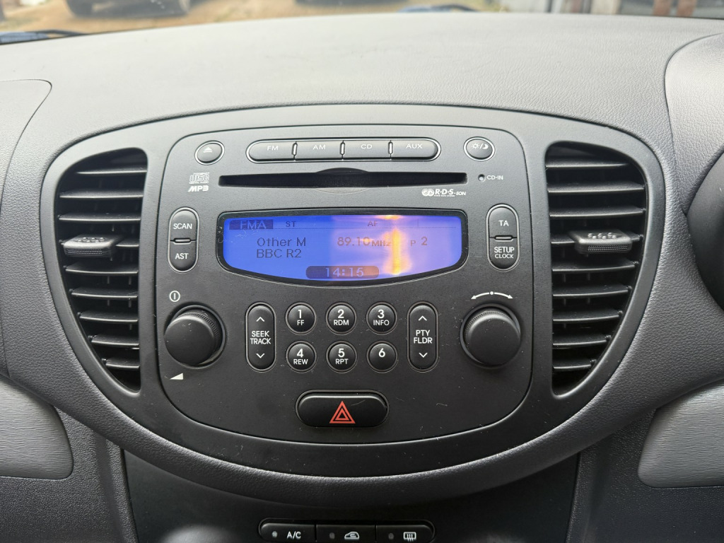 getaround in this immaculate 1.2 petrol I10 from Hyundai. This 5-speed manual Active model looks good finished in metallic silver with contrasting dark cloth interior. It has a good spec that includes electric windows, remote locking, alloy wheels and air-conditioning. The car has a full and comprehensive Hyundai main dealer service history that is made up of some 11-dealer stamps and a long advisory-free MOT. It comes with the owners book pack, fully stamped service booklet, two keys, locking wheel nut and clear HPi certificate. Phone, text or email for an appointment to view this cheap to rum and cheap to insure ulez compliant hatchback soon.