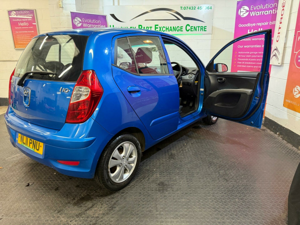HYUNDAI I 10- 5 DOOR - BLUE -103494 / £35 a Year Tax / LOW Insurance / 1x key / Comes With a New 12 Months MOT (No Advisories) / Just Been Serviced/SERVICE INTERVALS @23741 @35199 @46417 @52921 @64010 @72930 @75930 @75251 @85782 @90205 @103494 /Tyres Very Good / Great Runner / Fully Valeted Including Polish and Seats Cleaned. Note ***** Please See Option Which Reads ''Other Vehicles From This Dealer'' To See Our Range Of Peugoet 107s and Citreon C1s as We Specialize in these Vehicles or Look at our Website www.hinckleypartexchangecentre.co.uk ............. We Are Open 7 Days A Week For Appointment Only, Call Or Email Us Any Time To Arrange a Viewing, We Are A Part Exchange Site Which Sells Maintained Dealer Part Exchanges. We Inspect All Vehicles To Ensure Vehicles Are Correct Before Leaving Site. location is based in Hinckley, Leicestershire, LE101PN, We have a large well lit and heated showroom to keep you out of the elements along with a outside area for all your viewing needs or any special requirements. Check out our full stock see:- ***( www.Hinckleypartexchangecentre.co.uk )*** Hinckley Part Exchange Centre the family run first time driver specialists with 50+ vehicles in stock. Solely dealing in Peugeot 107, Citroen C1 & Toyota Aygo since 2015. We have over 30 years experience in the vehicle trade and will be sure to find you the right car to suit your budget and requirements. All vehicles leave our showroom with a new MOT (no advisories) a service and full vehicle check from our in house full-time dedicated mechanic. All vehicles are HPI clear and we do not sell any category damaged vehicles so you can be sure your getting the right vehicle for you or your loved one. 3 months FREE warranty and the best after care and service available.. 14in Alloy Wheels, ABS - Anti-Lock Brake System, Adjustable Head Restraints, Air Conditioning, Airbags - Driver, Airbags - Front Passenger, Airbags - Front Side, Airbags - Side, Body Colour Bumpers, Body Colour Door Handles and Mirrors, Body Colour Side Mountings, Central Locking, Childproof Rear Door Locks, Cigarette Lighter and Ashtray, Cup Holders - Front, Door Mirrors - Electric, Driver Seat Height Adjustment, EBD - Electronic Brake Force Distribution, Electric Front Windows, Electric Windows - Front and Rear with Drivers Anti-Trap and One-Touch Up-Down Control, Front Door Pockets, Front Fog Lights, Front Passenger Airbag De-Activation Switch, Front Passenger under Seat Storage Tray, Headlights - Electric Beam Levelling, Height Adjustable Steering Column, ISOFIX Child Seat Anchorage Points - Rear - Outer Rear, Interior Light, Locking Wheel Nuts, Luggage Compartment Light, One Touch Down Drivers Window Control, Power Assisted Steering, RDS Radio-CD Player with MP3 Compatibility, Remote Central Locking, Side Impact Bars, Spare Wheel - Temporary, Speakers x4, Split Folding Rear Seats - 60-40, Sun Visors with Driver and Passenger Vanity Mirrors, Thatcham Approved Immobiliser, USB and AUX Connections, Under Floor Storage in Boot. Part service history