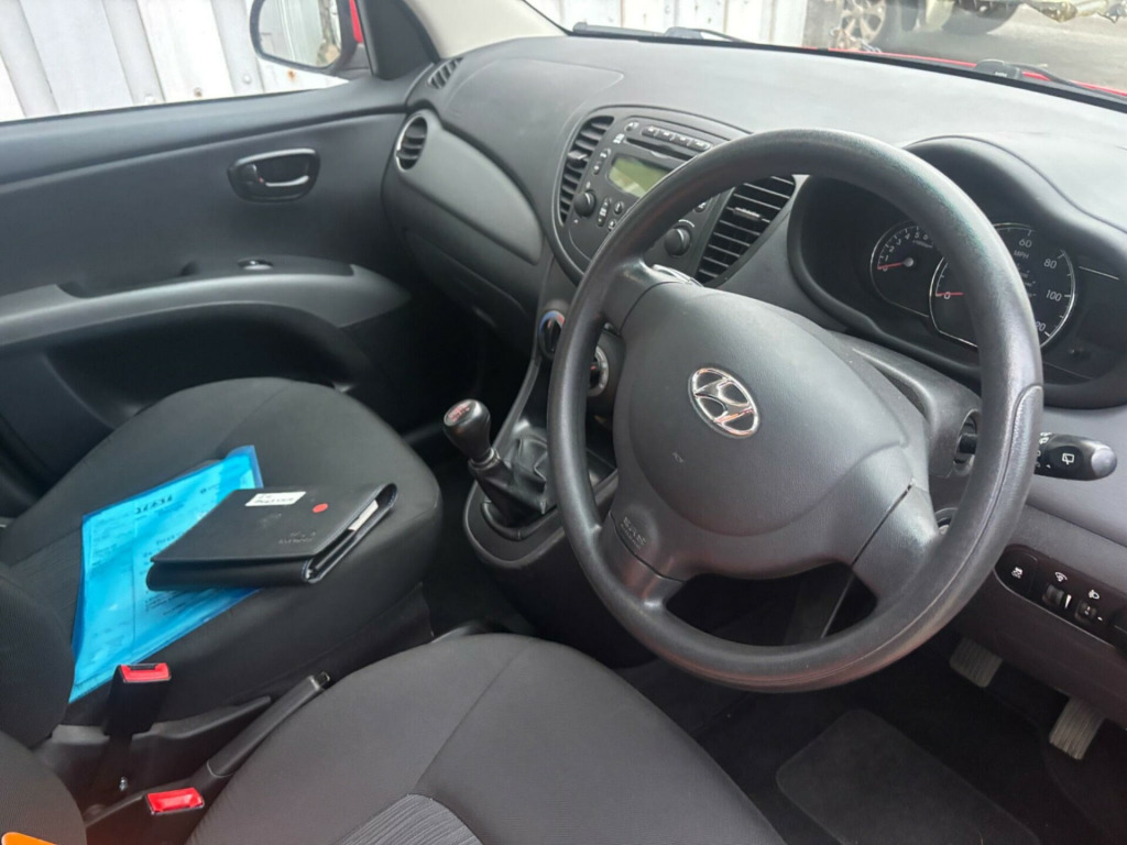 This 2013 Hyundai i10 Active is a truly exceptional find, boasting remarkably low mileage for its age at just 44,000 miles. This well maintained example, powered by an efficient 1.2 litre petrol engine, comes equipped with essential Air Conditioning to ensure your comfort on every journey. As an Active trim, it offers a practical and enjoyable driving experience, making it a sensible choice for many.The Hyundai i10 Active stands out with its impressive fuel economy, achieving an excellent 61 miles per gallon, which is significantly better than many other vehicles in its class. Furthermore, its low CO2 emissions and low insurance group rating mean that running costs are kept to a minimum, offering you great value and peace of mind. in alloy wheels, abs - anti-lock brake system, adjustable head restraints, air conditioning, airbags - driver, airbags - front passenger, airbags - front side, airbags - side, body colour bumpers, body colour door handles and mirrors, body colour side mountings, central locking, childproof rear door locks, cigarette lighter and ashtray, cup holders - front, door mirrors - electric, driver seat height adjustment, ebd - electronic brake force distribution, electric front windows, electric windows - front and rear with drivers anti-trap and one-touch up-down control, front door pockets, front fog lights, front passenger airbag de-activation switch, front passenger under seat storage tray, headlights - electric beam levelling, height adjustable steering column, isofix child seat anchorage points - rear - outer rear, interior light, locking wheel nuts, luggage compartment light, one touch down drivers window control, power assisted steering, rds radio-cd player with mp3 compatibility, remote central locking, side impact bars, spare wheel - temporary, speakers x4, split folding rear seats - 60-40, sun visors with driver and passenger vanity mirrors, thatcham approved immobiliser, usb and aux connections, under floor storage in boot, cloth - black