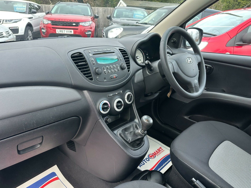 This 2010 Hyundai i10 1.2 Classic Euro 4 5dr Hatchback is currently available for £2,495 in Crawley West Sussex with Petrol engine and Manual gearbox. For more information or to arrange a viewing, click here to send us an email using form below.