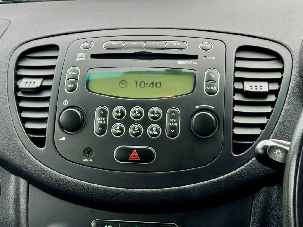 |||| THE USED CAR: ||||Pavillion Car Sales is pleased to offer this Hyundai i10 1.2 Classic 5dr, finished in smart black, with low mileage for a 2010 vehicle. With only 2 former keepers, this i10 has clearly been well cared for and represents a fantastic opportunity to pick up a reliable, simple, and economical hatchback. Powered by the 1.2 litre petrol engine with a manual gearbox, it’s easy to drive, cheap to run (56.6MPG), and ideal for city driving, commuting, or as a first car. The tax is only 35 per year and is Paid till Jan 2027.The Classic specification focuses on what really matters: low running costs, reliability, and everyday usability. This i10 returns an impressive around 56.5, helping keep fuel bills low, and it also sits in a low insurance group, making it an excellent choice for new drivers or anyone looking to keep costs down. Compact on the outside but practical on the inside, it’s easy to park, easy to maintain, and very affordable to own.|||| THE HISTORY: |||| Well Presented & Sensibly UsedWith 2 former keepers and very low mileage for its age, this Hyundai i10 has been sensibly used and well maintained. As with all our vehicles, it will be fully inspected prior to sale to ensure it meets our preparation standards. It comes with FULL SERVICE HISTORY as follows (12 TOTAL SERVICES) 1st at 6973, 2nd at 13025, 3rd at 19666, 4th at 24518, 5th at 30644, 6th at 34673, 7th at 38416, 8th at 43040, 9th at 46723, 10th at 53697, 11th at 55832, 12th at 62007|||| WHAT'S INCLUDED: |||| Benefits & Peace of MindFor extra reassurance, this vehicle comes with a NEW MOT, 3-month warranty, extendable up to a nationwide 36 months, plus 12 months complimentary AA breakdown cover. Driveaway insurance is available (not included), and we can also assist with road tax. 2 Keys.PAVILION CAR SALES – CRAWLEY. . Full service history