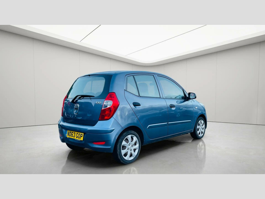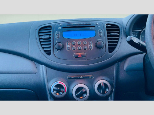 2013 low-mileage Hyundai i10 1.2 Classic finished in a lovely blue, covering just 24,099 miles from new. This is a top-spec model with air conditioning, 5 doors, manual gearbox, 1.2 petrol engine, and a temporary spare wheel. Extremely economical with only 108 g/km CO₂, making it ideal for first-time drivers, city driving or anyone wanting cheap running costs.Backed up with an excellent service history including 7 recorded services, 5 of them main dealer. The car drives spot-on and has clearly been well cared for. On sale it will come with a fresh MOT and a fresh oil & filter service for complete peace of mind.Clean inside and out, reliable, and very good value for money.Cars with mileage this low are rare.First to reserve will buy.Nationwide delivery available.. 14in Steel Wheels, ABS - Anti-Lock Brake System, Adjustable Head Restraints, Air Conditioning, Airbags - Driver, Airbags - Front Passenger, Airbags - Front Side, Airbags - Side, Black Door Handles and Mirrors, Body Colour Bumpers, Body Colour Door Handles and Mirrors, Body Colour Side Mountings, Central Locking, Childproof Rear Door Locks, Cigarette Lighter and Ashtray, Cup Holders - Front, EBD - Electronic Brake Force Distribution, Electric Front Windows, Front Door Pockets, Front Passenger Airbag De-Activation Switch, Front Passenger under Seat Storage Tray, Headlights - Electric Beam Levelling, Height Adjustable Steering Column, ISOFIX Child Seat Anchorage Points - Rear - Outer Rear, Interior Light, Luggage Compartment Light, Power Assisted Steering, RDS Radio-CD Player with MP3 Compatibility, Side Impact Bars, Spare Wheel - Temporary, Speakers x4, Split Folding Rear Seats - 60-40, Sun Visors with Driver and Passenger Vanity Mirrors, Thatcham Approved Immobiliser, USB and AUX Connections.