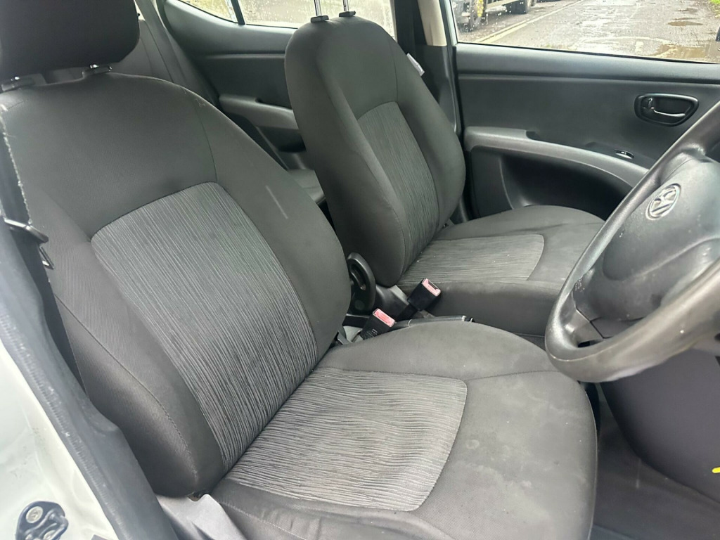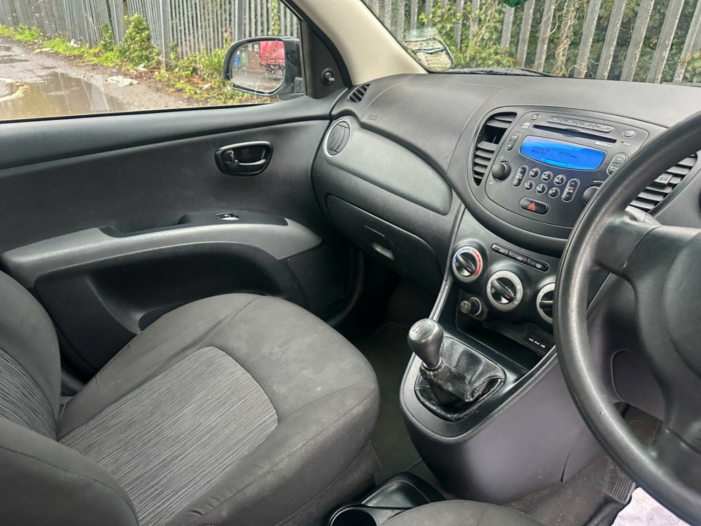 Px to clear so no warranty or guaranty offered on this car This 2011 Hyundai i10 Classic is a great choice, boasting a clear vehicle history check for your peace of mind. This model features a reliable 1.2 litre petrol engine and comes equipped with air conditioning to ensure a comfortable drive in all conditions.The Hyundai i10 Classic offers excellent running costs, achieving an impressive fuel economy of 61 miles per gallon. Its low CO2 emissions and low insurance group rating mean it is more economical to run than many other vehicles in its class, making it a sensible and cost effective option. in steel wheels, abs - anti-lock brake system, adjustable head restraints, air conditioning, airbags - driver, airbags - front passenger, airbags - front side, airbags - side, black door handles and mirrors, body colour bumpers, body colour door handles and mirrors, body colour side mountings, central locking, childproof rear door locks, cigarette lighter and ashtray, cup holders - front, ebd - electronic brake force distribution, electric front windows, front door pockets, front passenger airbag de-activation switch, front passenger under seat storage tray, headlights - electric beam levelling, height adjustable steering column, isofix child seat anchorage points - rear - outer rear, interior light, luggage compartment light, power assisted steering, rds radio-cd player with mp3 compatibility, side impact bars, spare wheel - temporary, speakers x4, split folding rear seats - 60-40, sun visors with driver and passenger vanity mirrors, thatcham approved immobiliser, usb and aux connections