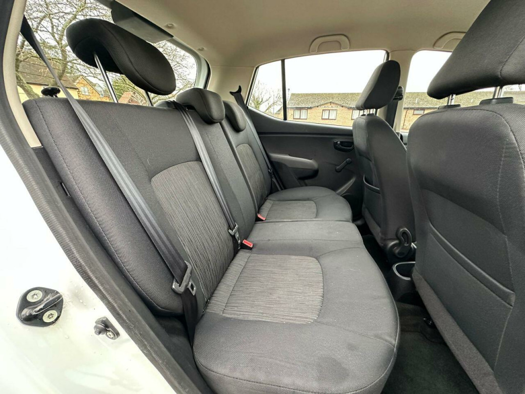 . 14in Steel Wheels, ABS - Anti-Lock Brake System, Adjustable Head Restraints, Air Conditioning, Airbags - Driver, Airbags - Front Passenger, Airbags - Front Side, Airbags - Side, Black Door Handles and Mirrors, Body Colour Bumpers, Body Colour Door Handles and Mirrors, Body Colour Side Mountings, Central Locking, Childproof Rear Door Locks, Cigarette Lighter and Ashtray, Cup Holders - Front, EBD - Electronic Brake Force Distribution, Electric Front Windows, Front Door Pockets, Front Passenger Airbag De-Activation Switch, Front Passenger under Seat Storage Tray, Headlights - Electric Beam Levelling, Height Adjustable Steering Column, ISOFIX Child Seat Anchorage Points - Rear - Outer Rear, Interior Light, Luggage Compartment Light, Power Assisted Steering, RDS Radio-CD Player with MP3 Compatibility, Side Impact Bars, Spare Wheel - Temporary, Speakers x4, Split Folding Rear Seats - 60-40, Sun Visors with Driver and Passenger Vanity Mirrors, Thatcham Approved Immobiliser, USB and AUX Connections, Cloth - Black, Crystal White.