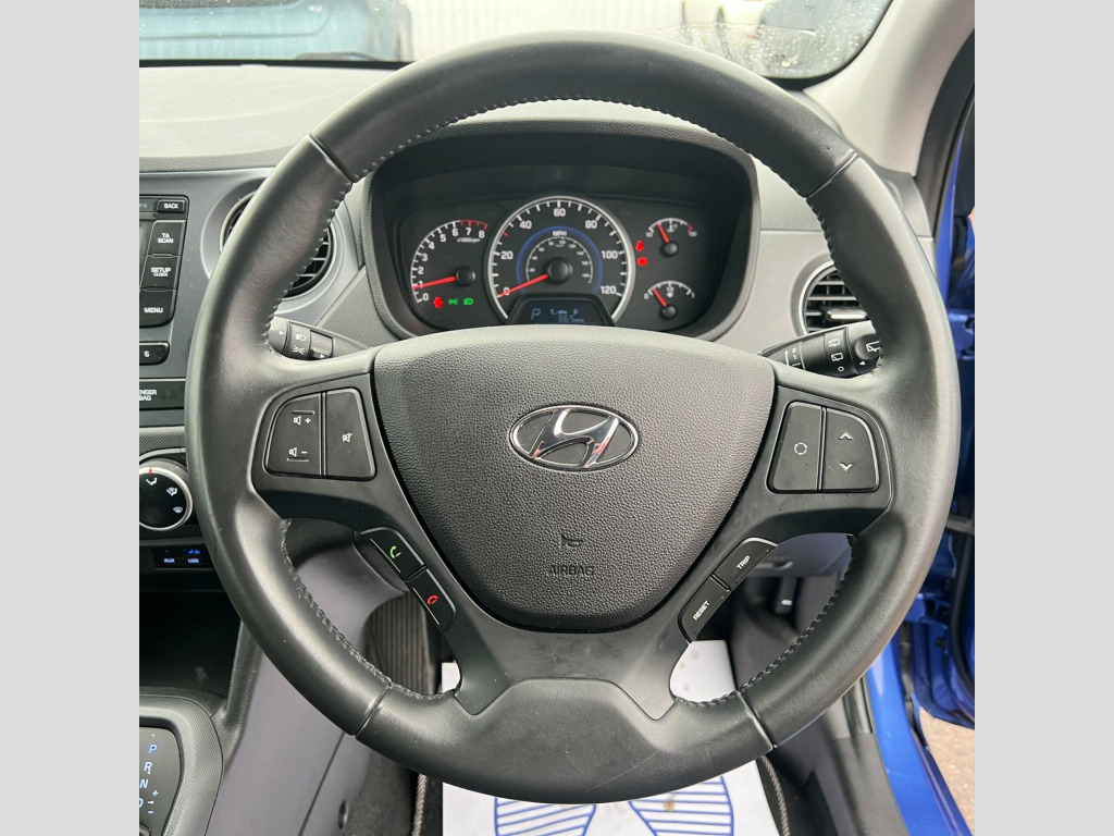 2018 Hyundai i10 1.2 SE Auto – just 25,645 miles, finished in Blue with a smooth automatic gearbox. Petrol, Euro 6 compliant and ULEZ friendly. Offered strictly as a clearance vehicle CAT-S. Optional Extra:, - Black-Grey Cloth Upholstery, Interior & Comfort:, - Manual air conditioning, - Electric windows front and rear, - Height-adjustable drivers seat, - 60/40 split folding rear seats, Technology:, - DAB digital radio & MP3-compatible stereo, - USB and AUX input, - Steering wheel audio and phone controls, Safety & Assistance:, - ABS, ESP, Brake Assist, - ISOFIX rear child seat points, - TPMS – Tyre Pressure Monitoring System, - Remote central locking with speed-sensing auto door locking, Performance & Efficiency:, - 1.2L Petrol | Automatic | 86 BHP, - 0–62 mph in 13.8 secs | Top speed 101 mph, - Up to 47.9 mpg (WLTP avg), - Euro 6 – ULEZ compliant, Please note: This vehicle is being sold under our Part Exchange Clearance category. It does not come with our usual retail warranty package and is priced accordingly. Ideal for traders or buyers seeking a budget automatic with low mileage and a great spec. Test drives and inspections welcome by appointment. PX clearance stock moves quickly – enquire today with Auto Avenue Birmingham Ltd.