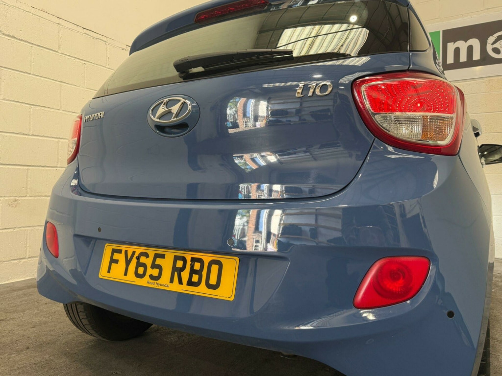 Discover this 2015 Hyundai i10 Premium SE, a car boasting exceptionally low mileage for its year, having covered just 35,184 miles. This well appointed model features a responsive 1.2 litre petrol engine and comes equipped with desirable features such as rear parking sensors for easier manoeuvring, heated front seats for added comfort on colder days, and keyless entry for convenience. Enjoy the open air with the electric tilt and slide glass sunroof, and maintain the perfect cabin temperature with climate control.This Hyundai i10 Premium SE offers excellent value, highlighted by its low insurance group, making it an economical choice for many drivers. You can also expect impressive running costs, with a notable fuel economy of 58 miles per gallon and low CO2 emissions, indicating it is more efficient than many other vehicles in its class. v power outlet - front x2, 15in alloy wheels, abs - anti-lock brake system, adjustable head restraints, airbags - driver, airbags - front passenger, airbags - front side, airbags - full length curtain, bas - brake assist system, bluetooth connectivity with voice recognition, bottle holders - front centre console and door, bottle holders - rear door, childproof rear door locks, chrome effect interior door handles, climate control, cruise control, daytime running lights - led, door courtesy lights, door handles - chrome, door mirrors with integrated indicators - body coloured, driver seat height adjustment, driver and passenger sun visor with ticket holder, drivers side safety window with anti trap function, esp - electronic stability programme, ess - emergency stop signal, electric adjustment and heated door mirrors, electric tilt and slide glass sunroof, electric windows - front and rear, engine start stop button, front console storage cover, front door pockets, front fog lights, front passenger airbag de-activation switch, front static cornering lights, front and rear seatbelt reminder, gear knob - leather, hac - hill-start assist control, heated front seats, heated steering wheel, height adjustable steering column, isofix child seat anchorage points - rear - outer rear, illuminated glove box, immobiliser, keyless entry, locking wheel nuts, luggage compartment light, one touch down drivers window control, parking sensors - rear, power assisted steering, rds radio-cd player with mp3 compatibility, rear door pockets, rear spoiler with integrated brake light, remote central locking, space saver emergency spare wheel, speakers x4, speed sensitive automatic door locking, split folding rear seats - 60-40, steering wheel - leather, steering wheel audio and phone controls, sun visors with vanity mirrors, traction control, trip computer, tyre pressure monitoring system - tpms, usb and aux connections, vsm - vehicle stability management, voice control