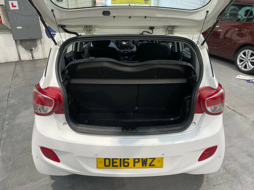 This 2016 Hyundai i10 1.2 Premium SE Hatchback with a 5-speed manual transmission runs on petrol and has just 87000 miles on the clock. With 5 doors and 5 seats, this car is spacious and versatile, making it perfect for families or everyday use. It is ULEZ compliant. The vehicle is equipped with 12V Power Outlet - Front x2, Bluetooth Connectivity with Voice Recognition, RDS Radio-CD Player with MP3 Compatibility, Speakers x4, and USB and AUX Connections, ensuring a comfortable and convenient driving experience. With 87 ps, this Euro 5 compliant car is both reliable and efficient, making it an excellent choice for anyone in the market for a hatchback. Overall this is a fabulous example of this extremely sort after little hatchback. It's perfect for those round the town journeys and even more desirable for a first time driver. It is a one owner vehicle from new and benefits from having Full Service History, 2 keys and will be issued with a new MOT upon purchase. Actons Motor Company NEVER buys cars from auction halls, we are a family run business that has operated in Brighton and Shoreham for over 35 years. Due to expansion we have moved to a new larger Showroom in the village of Rustington in between Worthing and Littlehampton . We have a large indoor showroom that displays up to 40 cars and customer parking on our forecourt right outside. Appointments are not necessary but advisable due to the fast turnover of stock we experience. Please see our customers Google reviews based on the after sales service and sales experience we offer v power outlet - front x2, bluetooth connectivity with voice recognition, rds radio-cd player with mp3 compatibility, speakers x4, usb and aux connections, 15in alloy wheels, door handles - chrome, door mirrors with integrated indicators - body coloured, electric adjustment and heated door mirrors, electric tilt and slide glass sunroof, electric windows - front and rear, locking wheel nuts, one touch down drivers window control, rear spoiler with integrated brake light, space saver emergency spare wheel, abs - anti-lock brake system, airbags - driver, airbags - front passenger, airbags - front side, airbags - full length curtain, bas - brake assist system, childproof rear door locks, drivers side safety window with anti trap function, esp - electronic stability programme, ess - emergency stop signal, front passenger airbag de-activation switch, front and rear seatbelt reminder, hac - hill-start assist control, isofix child seat anchorage points - rear - outer rear, immobiliser, keyless entry, remote central locking, speed sensitive automatic door locking, traction control, vsm - vehicle stability management, adjustable head restraints, bottle holders - front centre console and door, bottle holders - rear door, chrome effect interior door handles, climate control, door courtesy lights, driver seat height adjustment, driver and passenger sun visor with ticket holder, engine start stop button, front console storage cover, front door pockets, gear knob - leather, heated front seats, heated steering wheel, height adjustable steering column, illuminated glove box, luggage compartment light, rear door pockets, split folding rear seats - 60-40, steering wheel - leather, steering wheel audio and phone controls, sun visors with vanity mirrors, cruise control, parking sensors - rear, power assisted steering, trip computer, tyre pressure monitoring system - tpms, voice control, daytime running lights - led, front fog lights, front static cornering lights