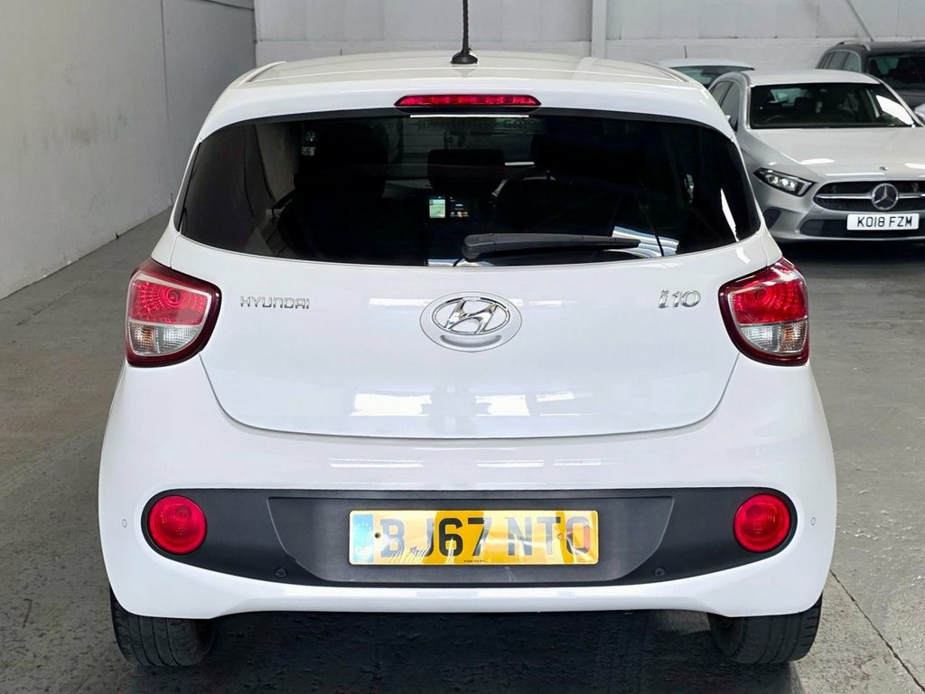 ** Vehicle Reg - BJ67 NTO ** FULL HYUNDAI SERVICE HISTORY This Feature packed! Polar White Hyundai i10 Premium SE boasts a full dealership service history and has had only one owner from new, ensuring excellent provenance. Powered by a 1.2 litre Euro 6 compliant petrol engine, this model offers a smooth and efficient driving experience. The Premium SE trim level comes generously equipped, featuring a vibrant 7 inch touchscreen satellite navigation system with TMC, Mapcare, and LIVE Services, Digital DAB Radio, seamlessly integrating with Android Auto, Apple CarPlay and Bluetooth connectivity for hands free calls and audio streaming for effortless connectivity. Further Notable features include climate control air conditioning, an electric tilt and slide glass sunroof, a heated steering wheel, and heated front seats, all designed to enhance comfort. For added convenience, there's cruise control rear parking sensors are also fitted. The MOT is valid until June 2026, and the vehicle has a clear history check, providing peace of mind. The low insurance group rating indicates that this Hyundai i10 is more economical to run compared to many other vehicles in its class. This well maintained and feature rich i10 comes with a 3 month warranty, making it a sound choice for your next car. Contact us now to arrange your test drive viewing, or book your appointment directly on our website 24/7! Polar White, 12V Power Outlet - Front Console, 15in Alloy Wheels, ABS - Anti-Lock Brake System, Air Conditioning - Climate Control, Airbags - Front - Front Side and Curtain, Alarm - Thatcham Category 2, BAS - Brake Assist System, Black B Pillar, Bluetooth Connectivity, Body Coloured Door Handles and Mirrors, Bottle Holders - Front Centre Console - , Bumpers - Body Coloured, Childproof Rear Door Locks, Chrome Effect Interior Door Handles, Cruise Control with Speed Limiter, DAB Digital Radio, Daytime Running Lights - LED, Door Mirror Integrated Indicators, Door Mirrors - Electric Folding - Electr, Driver Seat Height Adjustment, ESP - Electronic Stability Programme, ESS - Emergency Stop Signal,