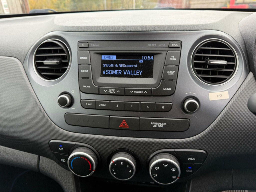 This 2019 Hyundai i10 SE presents an exceptional ownership proposition, boasting a mere 27,000 miles on the clock, which is remarkably low for its age, and has been cherished by just one owner from new. This well maintained example features a 1.2 litre petrol engine, meeting Euro 6 emissions standards, and comes with a full service history, with the last service completed at 27,000 miles. For your peace of mind, the MOT is valid until September 2026. The SE trim level includes desirable features such as manual air conditioning to keep you comfortable, and Bluetooth connectivity for seamless phone integration and audio streaming. The inclusion of a Driver Assist Pack further enhances its appeal. These factors, combined with its low insurance group rating and the fact it has had only one owner and a full service history, demonstrate that this Hyundai i10 SE offers excellent value and a superior ownership experience compared to other vehicles in its class.