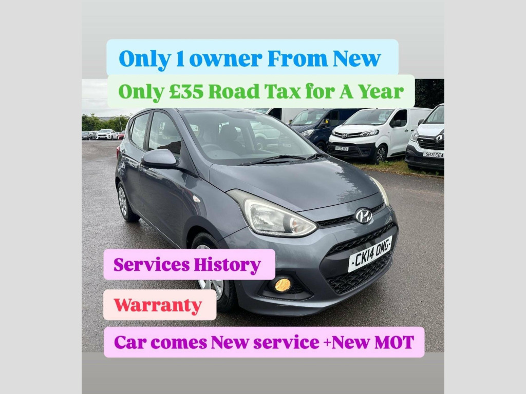 LOW MILEAGE+ONLY 1 OWNER FROM NEW+ONLY £35 ROAD TAX FOR A YEAR+13 STAMPS ON SERVICE BOOK ALL FROM HYUNDAI+CAR COMES WITH NEW SERVICE+NEW MOT+FULL INSPECTION+WARRANTY WHICH YOU CAN EXTENDED UP TO ONE YEAR+DRIVE AND PERFORMS SUPERB,This 2014 Hyundai i10 SE is a fantastic example, having been owned by just one person from new and boasting a remarkably low mileage of 41,400 miles for its age. Powered by an efficient 1.2 litre petrol engine, this model offers a smooth driving experience. It comes with a full 12 months MOT for your peace of mind, and its last service was completed at 41,400 miles, ensuring its well maintained. Inside, youll find the comfort of Air Conditioning, making every journey pleasant. The Hyundai i10 SE stands out with its impressive fuel economy, achieving an excellent 58 miles per gallon, which is significantly better than many other cars in its class. This, combined with its low CO2 emissions, makes it a very economical choice for daily driving. Furthermore, its low insurance group rating means that running costs are kept to a minimum, offering great value for money.