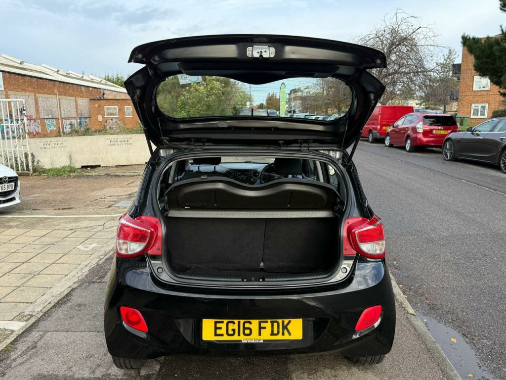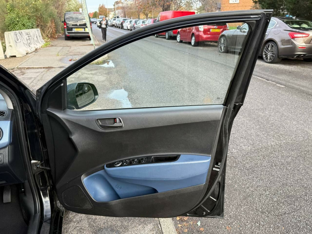 Beautiful Hyundai i10 1.2 SE in excellent condition. Top Specs,Electric Windows, Electric Side Mirrors, Climate Control, Steering Control, Cruise Control, Aux Connection, Alloys, Isofix, and many more...., Great Mpg, cheap to Tax and Insure. ULEZ compliant, 3 Previous Owners & 2 Keys. The car has been very well looked after and comes with FULL HYUNDAI-Service history. We had it serviced recently at 61270 miles on 12/11/2024. It has also been MOTed till 28/10/2026 with no advisory. 3 Months essential warranty with Customer Protect is also included for your peace of mind. It is in very good condition and drives very smoothly with no fault whatsoever. ALL OUR CARS ARE FULLY INSPECTED BY PROFESSIONALS PRIOR TO ADVERTISEMENT & COME WITH 12 MONTHS FREE BASIC AA BREAKDOWN COVER. Finance is also available on request. DRIVE-AWAY INSURANCE IS ALSO AVAILABLE AT A COST. TO VIEW MORE STOCK PLEASE VISIT OUR WEBSITE AT: WWW.MEGAMOTORSUK.CO.UK , ace saver emergency spare wheel, cloth - blue, 12v power outlet - front x2, 14in steel wheels, abs - anti-lock brake system, adjustable head restraints, air conditioning, airbags - driver, airbags - front passenger, airbags - front side, airbags - full length curtain, bas - brake assist system, bottle holders - front centre console and door, bottle holders - rear door, childproof rear door locks, cruise control with speed limiter, daytime running lights, door courtesy lights, door handles - body coloured, door mirrors - body coloured, driver seat height adjustment, driver and passenger sun visor with ticket holder, esp - electronic stability programme, electric adjustment and heated door mirrors, electric windows - front and rear, front door pockets, front passenger airbag de-activation switch, front and rear seatbelt reminder, height adjustable steering column, isofix child seat anchorage points - rear - outer rear, immobiliser, luggage compartment light, one touch down drivers window control, power assisted steering, rds radio-cd player with mp3 compatibility, rear door pockets, rear spoiler with integrated brake light, remote central locking, speakers x2, speed sensitive automatic door locking, split folding rear seats - 60-40, sun visors with vanity mirrors, trip computer, tyre pressure monitoring system - tpms, tyre repair kit, usb and aux connections