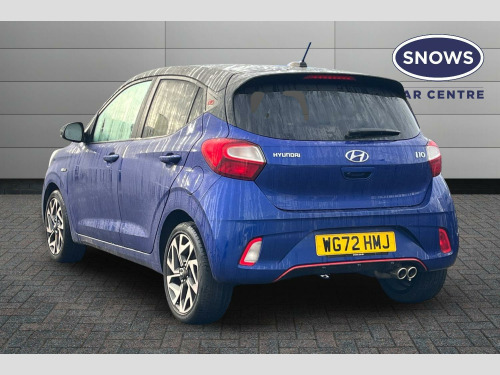 This 2022 Hyundai i10 T-GDi N Line boasts a full service history, with its last service completed on 2025-02-18 at 16260 miles, offering excellent provenance. This Euro 6 compliant model features a responsive 1.0L petrol engine and is presented in the sporty N Line trim. Inside, you'll find a host of convenient features including climate control air conditioning, a rear view parking camera for easier manoeuvring, and auto light control. Stay connected on the go with Bluetooth connectivity and voice recognition, and enjoy seamless smartphone integration with wireless Apple CarPlay.