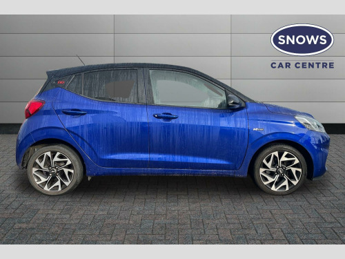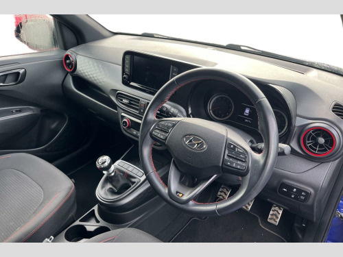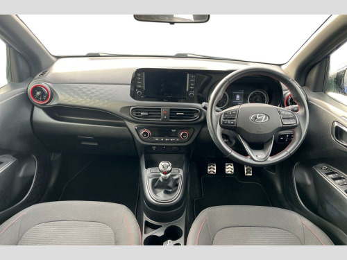 The Hyundai i10 T-GDi N Line offers an impressive fuel economy of 52 mpg, making it an economical choice for your daily journeys. Its low CO2 emissions further contribute to its environmental credentials. With an acceleration of 0-62mph in just 10.5 seconds, this i10 provides a lively driving experience that stands out from other vehicles in its class, combining efficiency with engaging performance. Two Tone Roof - Black, Cloth - Black with Flame Red Stitching, 12V Power Outlet - Front Console, 16in Alloy Wheels, ABS - Anti-Lock Brake System, AEB - Autonomous Emergency Brake with Forward Collision Warning System, Air Conditioning - Climate Control, Airbags - Front - Front Side and Curtain Airbags, Alarm and Immobiliser, Auto Light Control, BAS - Brake Assist System, Black B Pillar, Bluetooth Connectivity with Voice Recognition, Body Colour Bumpers, Bottle Holders - Front Centre Console - Front and Rear Doors, Central Locking - Remote Control, Centre Console Display - 8in Touchscreen, Cruise Control with Speed Limiter, Daytime Running Lights - LED, Door Mirrors - Body Coloured, Driver Attention Alert - DAA, Drivers Seat Height Adjustment - Manual, E-Call, Electric Adjustment and Heated Door Mirrors, Electric Windows - Front and Rear, Electronic Stability Control - ESC, Exterior Door Handles - Body Coloured, Front Fog Lights, Front Grille, Front Head Restraints - Vertical and Horizontal Adjustment, Front Passenger Airbag De-Activation Switch, Front Windscreen Wipers - Intermittent Function, Glove Compartment, HAC - Hill-Start Assist Control, Head Restraints - Rear with Vertical Adjustment, Headlights - Bi-Function Projection Headlamps, Headlining - Black, Height Adjustable Steering Column, High Beam Assist, Honeycomb Design Detail - Dash and Door, Indicator Lights - Door Mirror, Interior Door Handles - Metal Paint Effect, Interior Light - Cabin and Luggage Compartment, LED Rear Combination Lights, Lane Departure Warning System with Lane Keeping Assist, N Line Badging, N Line Branded Gear Stick, N Line Branded Leather Wrapped Steering Wheel, N Line Package, Power Assisted Steering, Privacy Glass - Rear Side Window and Tailgate, Rear Spoiler with Integrated Brake Light, Rear Windscreen Wiper - 1 Speed Non Intermittent, Rear-View Parking Camera, Speakers - 2 Front - 2 Rear, Split Folding Rear Seats - 60-40, Steering Wheel with Audio - Phone and Cruise Controls, Trip Computer, Tyre Pressure Monitoring System - TPMS, Tyre Repair Kit, USB Connectivity Port - 1 Front, Wireless Android Auto, Wireless Apple CarPlay