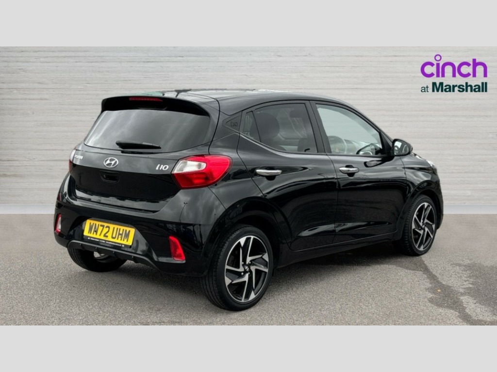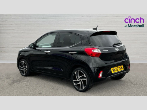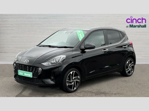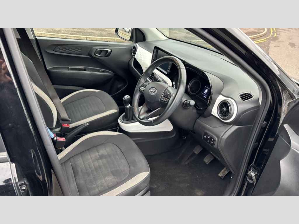 Hyundai I10 1.2 MPi Premium 5dr 8" Touchscreen centre console display audio with smart device integration and DAB, Apple car play/Android Auto, Bluetooth connectivity with voice recognition, Cruise control + speed limiter, Driver attention alert system, eCall emergency call system, ISG - Idle stop and go, Lane departure warning system with lane keep assist - LKAS, PAS, Rear view camera, Roadside assistance, Trip computer, 2 front/2 rear speakers, Steering wheel audio, phone and cruise controls, USB socket, 1 speed non intermittent rear windscreen wiper, Bi-function projection headlights, Black finish on B pillars, Body colour door handles, Body coloured bumpers, Body coloured door mirrors, Electric front windows, Electric rear windows, Electrically adjustable and heated door mirrors, Front fog lights, Front grille in glossy black, Front intermittent wipers, Halogen headlights, Heated rear window, High beam assist, Indicator light on door mirrors, LED daytime running lights, Privacy glass - Rear windows and tailgate, Rear roof spoiler with integrated LED brake light, Rear side wing doors, 12v power outlet - front, 3 seat bench in 2nd row, 60/40 split folding flat to floor rear seats, Auto light control, Bottle holders in front/rear doors + front centre console, Cabin and luggage compartment interior lighting, Climate control, Driver + passenger vanity mirrors, Driver's seat height adjustment, Driver/passenger sunvisors with ticket holders, Front door pockets, Front Head Restraints - Vertical and Horizontal Adjustment, Glove compartment, Heated front seats, Heated steering wheel, Height adjustable steering column, Isofix child seat preparation, Leather wrapped steering wheel and gear knob, Metal paint effect interior door handles, Rear door pockets, Single front passenger seat, Vertical adjustment rear head restraints, 3x3 point rear seatbelts, Airbags - front, front side and curtain airbags, Anti-lock brake system (ABS), Autonomous emergency braking (AEB) with forward collision warning system, Brake assist function, Childproof rear door locks, Electronic stability control, Front and rear disc brakes, Front and rear seatbelt reminder, Front seatbelt pretensioners, Hill start assist control (HAC), Passenger airbag deactivate switch, Traction control, Tyre pressure monitoring system, Immobiliser, Perimeter alarm, Remote central locking, Second remote key, Speed sensitive auto door locking, 16" alloy wheels, Tyre repair kit