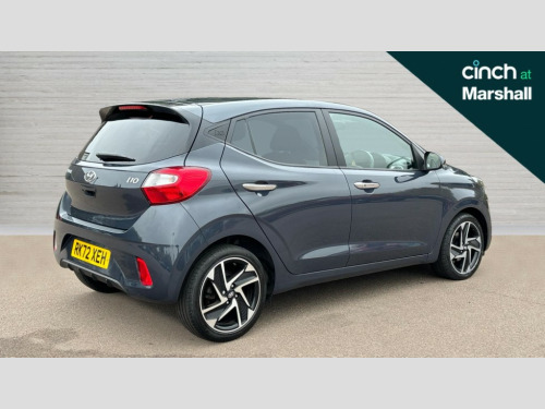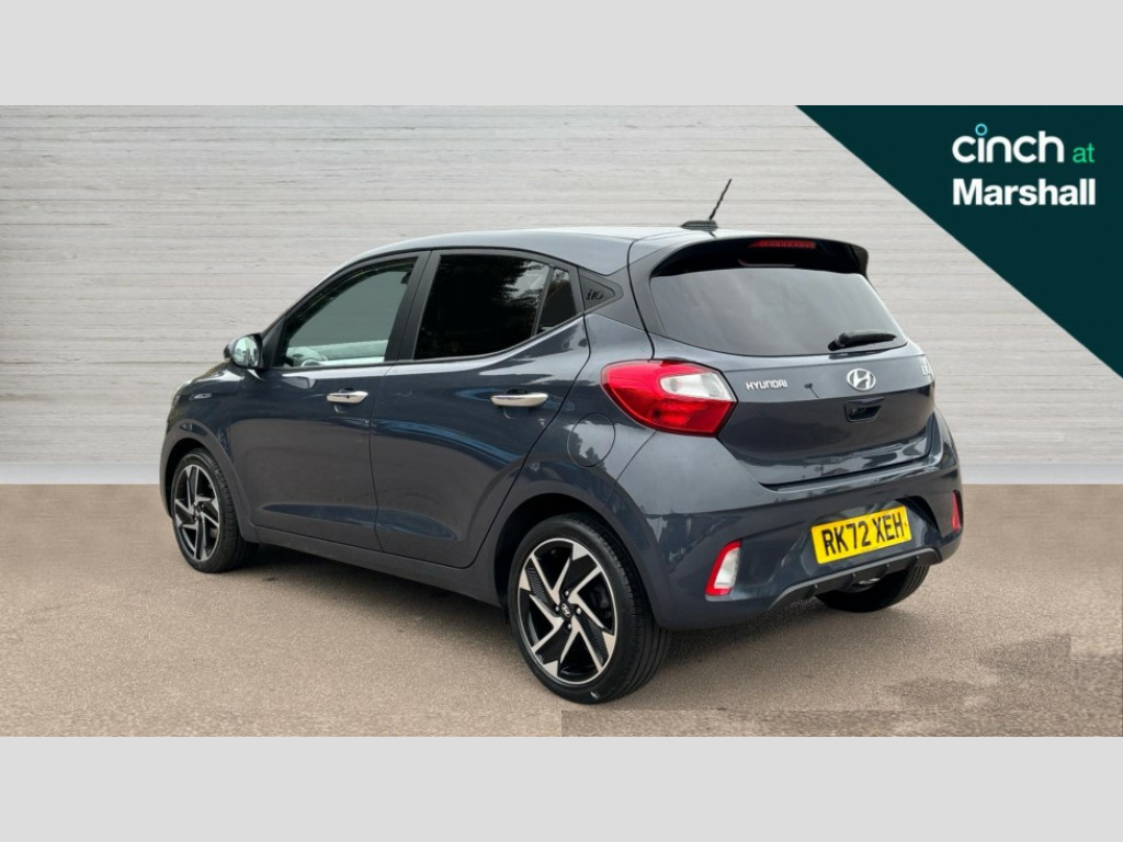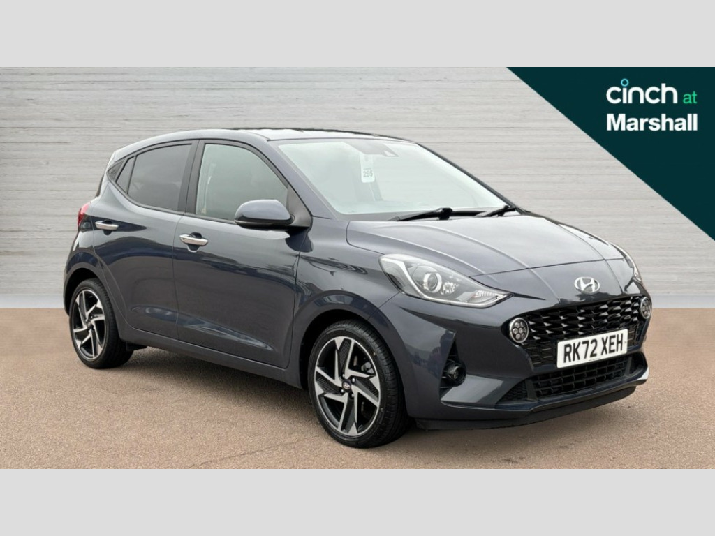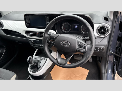 Hyundai I10 1.2 MPi Premium 5dr Auto 8" Touchscreen centre console display audio with smart device integration and DAB, Apple car play/Android Auto, Bluetooth connectivity with voice recognition, Cruise control + speed limiter, Driver attention alert system, eCall emergency call system, ISG - Idle stop and go, Lane departure warning system with lane keep assist - LKAS, PAS, Rear view camera, Roadside assistance, Trip computer, 2 front/2 rear speakers, Steering wheel audio, phone and cruise controls, USB socket, 1 speed non intermittent rear windscreen wiper, Bi-function projection headlights, Black finish on B pillars, Body colour door handles, Body coloured bumpers, Body coloured door mirrors, Electric front windows, Electric rear windows, Electrically adjustable and heated door mirrors, Front fog lights, Front grille in glossy black, Front intermittent wipers, Halogen headlights, Heated rear window, High beam assist, Indicator light on door mirrors, LED daytime running lights, Privacy glass - Rear windows and tailgate, Rear roof spoiler with integrated LED brake light, Rear side wing doors, 12v power outlet - front, 3 seat bench in 2nd row, 60/40 split folding flat to floor rear seats, Auto light control, Bottle holders in front/rear doors + front centre console, Cabin and luggage compartment interior lighting, Climate control, Driver + passenger vanity mirrors, Driver's seat height adjustment, Driver/passenger sunvisors with ticket holders, Front door pockets, Front Head Restraints - Vertical and Horizontal Adjustment, Glove compartment, Heated front seats, Heated steering wheel, Height adjustable steering column, Isofix child seat preparation, Leather wrapped steering wheel and gear knob, Metal paint effect interior door handles, Rear door pockets, Single front passenger seat, Vertical adjustment rear head restraints, 3x3 point rear seatbelts, Airbags - front, front side and curtain airbags, Anti-lock brake system (ABS), Autonomous emergency braking (AEB) with forward collision warning system, Brake assist function, Childproof rear door locks, Electronic stability control, Front and rear disc brakes, Front and rear seatbelt reminder, Front seatbelt pretensioners, Hill start assist control (HAC), Passenger airbag deactivate switch, Traction control, Tyre pressure monitoring system, Immobiliser, Perimeter alarm, Remote central locking, Second remote key, Speed sensitive auto door locking, 16" alloy wheels, Tyre repair kit