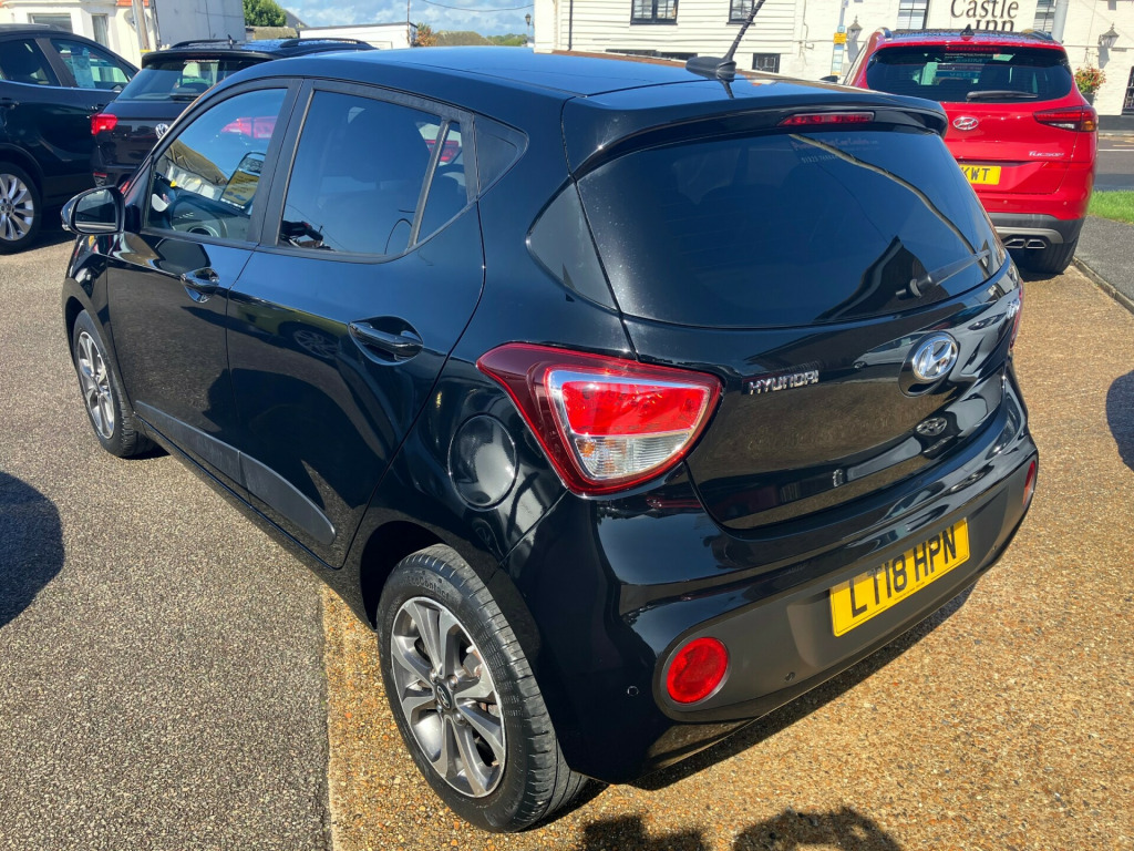 For sale is a 2018 Hyundai i10 Premium SE 1.2 5 Dr Auto with only 6000 miles on the clock. This hatchback is powered by a petrol engine and is ULEZ compliant, making it perfect for city driving. With 5 seats and 5 doors, there's plenty of room for passengers and luggage. The MOT expires on 14/04/2026, giving you peace of mind for years to come. This stylish vehicle comes equipped with modern features such as a 7'' touch screen navigation system, Apple CarPlay/Android Auto connectivity, Bluetooth, and an emergency stop signalling system. With power-assisted steering (PAS), driving this car is a breeze. Don't miss out on the opportunity to own this well-maintained, low mileage Hyundai i10., touch screen navigation, apple car play/android auto, bluetooth system, emergency stop signalling system, pas, rear parking sensor, trip computer, vehicle stability control (vsc), 4 speakers, dab digital radio, rds radio with mp3 player, steering wheel mounted controls, usb/aux input socket, black finish on b pillars, body colour door handles, body coloured bumpers, body coloured door mirrors, cornering light, door mirror integrated indicators, drivers one touch up/down with anti-trap, electric front windows, electric glass tilt and slide sunroof, electric rear windows, electrically adjustable and heated door mirrors, front intermittent wash wipers, grey side mouldings, led daytime running lights, privacy glass, rear spoiler, rear wiper, 12v power outlet - front, 60/40 split folding flat to floor rear seats, chrome effect interior door handles, climate control, cloth upholstery, courtesy lights, driver + passenger vanity mirrors, driver, driver/passenger sunvisors with ticket holders, front and rear bottle holders, front console box, front door pockets, front/rear adjustable head restraints, heated front seats, heated steering wheel, height adjustable steering column, illuminated glovebox, isofix child seat preparation, leather gearknob, leather steering wheel, luggage compartment lighting, rear door pockets, 3x3 point rear seatbelts, abs/ebd, brake assist function, childproof rear door locks, curtain airbags, driver/front passenger airbags, electronic stability control, front and rear seatbelt reminder, front seatbelt pretensioners, front side airbags, height adjustable front seatbelts, hill assist control, passenger airbag deactivate switch, traction control, tyre pressure monitoring system, immobiliser, locking wheel nuts, perimeter alarm, remote central locking, speed sensitive auto door locking, 15'' alloy wheels, space saver spare wheel, 15'' Alloys