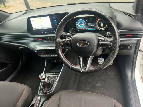 This 2022 Hyundai i20 T-GDi N Line presents an exceptional opportunity, having been owned by just one person and covered a mere 20,000 miles, making it remarkably low mileage for its age. This stylish hatchback boasts a 1.0 litre petrol hybrid engine, meeting Euro 6 emissions standards. Inside, you'll find a wealth of modern conveniences, including a heated steering wheel for those chilly mornings, and seamless smartphone integration with Apple CarPlay and Android Auto. The smart key system allows for keyless entry and engine start, while a rear view parking camera aids in manoeuvring.The generous boot space is a standout feature, offering ample room for shopping, luggage, or sports equipment, indicating its practicality for everyday use and longer journeys. The N Line trim further enhances the driving experience, and the combination of its low mileage, single owner provenance, and desirable features like the heated steering wheel and advanced phone connectivity, sets this Hyundai i20 apart from other vehicles in its class. v power outlet - front console, 17in alloy wheels - n line exclusive design, 6 airbags - front - front seat side and curtain, abs - anti-lock brake system, adjustable head restraints, adjustable intermittent front windscreen wipers with aero wiper blade, armrest - front with storage, automatic dimming rear view mirror, automatic headlights with dusk sensor, automatic windscreen wipers with rain sensor, autonomous emergency brake, bluelink, bluetooth connectivity, body colour bumpers, branded tyres - hankook, bumpers - n line body kit, centre console display - 10.25in touchscreen satellite navigation - traffic messaging channel - mapcare - live services, childproof rear door locks, climate control with automatic de-fog system for front windscreen, cruise control with speed limiter, dab digital radio, daytime running lights - led, deadlocks, door handles interior - satin chrome effect, door mirrors - electric adjustment and heated with power folding function, door mirrors with integrated indicators - body coloured, drive mode selector, driver attention alert - daa, driver seat height adjustment, esp - electronic stability programme, ess - emergency stop signal, electric power steering, electric windows - front and rear with drivers anti-trap and one-touch up-down control, exterior door handles - body coloured, forward collision avoidance assist with pedestrian and cycle detection - fca, front fog lights, front grille - black n line exclusive, front map reading lights, front seatbelt pre-tensioners, hac - hill-start assist control, headlights - led with static cornering, heated steering wheel, height adjustable front seatbelts, high beam assist, isofix child seat anchorage points - rear, immobiliser, impact sensing auto door unlocking, interior - black n line exclusive with red accents, interior light - cabin and luggage compartment, interior mood lighting - blue, interior roof liner - black, led rear combination lights, lane departure warning system with lane keeping assist, leather wrapped gear knob with n logo, leather wrapped steering wheel with n logo, locking wheel nuts, luggage board, parking sensors - rear, passenger airbag de-activation switch, perimeter alarm, phone connection - android auto, phone connection - apple carplay, privacy glass - rear side window and tailgate, rear exhaust - twin muffler, rear spoiler with integral led brake light, rear wiper with intermittent function, rear-view parking camera, remote central locking, seatbelt reminder - front and rear, seats - 60-40 split folding rear, shark fin antenna, smart key - keyless entry with engine start-stop button, speakers - 2 tweeters - 2 front - 2 rear, speed sensitive automatic door locking, steering column - height and reach adjustable, steering wheel audio and phone controls, sun visors with driver and passenger illuminated vanity mirrors, supervision instrument cluster - 10.25in, tinted glass, trip computer, tyre pressure monitoring system - tpms, tyre repair kit, usb and aux connections, vsm - vehicle stability management, window surround - black, ecall - emergency call button
