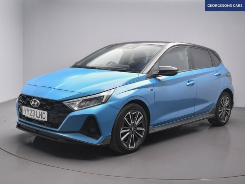 Powered by a 1.0-litre T-GDi mild hybrid petrol engine, this Hyundai i20 N Line Hatchback achieves 0-62mph in 10.4 seconds and up to 53.3mpg with a 6-speed manual gearbox, delivering agile and economical performance for city commutes and spirited drives. The N Line trim, a sporty mid-tier model in the i20 range, equips this hatchback with dynamic styling and advanced technology for an engaging drive. With one owner and three services, this i20 is in pristine condition, ready for any journey. Navigate effortlessly with a reverse camera, rear parking sensors, and satellite navigation, while Apple CarPlay, Bluetooth, and DAB radio provide seamless connectivity through a 10.25-inch touchscreen. Climate control ensures a comfortable cabin, complemented by adaptive cruise control, lane assist, and selectable drive modes for confident and versatile driving. A push-button start enhances convenience, while the 352-litre boot and sleek five-door hatchback design complete this high-spec mild hybrid. With a meticulous service record and bold N Line flair, this Hyundai i20 N Line awaits your test drive. Contact us today to experience this dynamic hatchback! 12V Power Outlet - Front Console, 17in Alloy Wheels - N Line Exclusive Des, 6 Airbags - Front - Front Seat Side and , ABS - Anti-Lock Brake System, Adjustable Head Restraints, Adjustable Intermittent Front Windscreen, Armrest - Front with Storage, Automatic Dimming Rear View Mirror, Automatic Headlights with Dusk Sensor, Automatic Windscreen Wipers with Rain Se, Autonomous Emergency Brake, BlueLink, Bluetooth Connectivity, Body Colour Bumpers, Branded Tyres - Hankook, Bumpers - N line Body Kit, Central Locking - Remote Control, Centre Console Display - 10.25in Touchsc, Childproof Rear Door Locks, Climate Control with Automatic De-Fog Sy, Cruise Control with Speed Limiter, DAB Digital Radio,