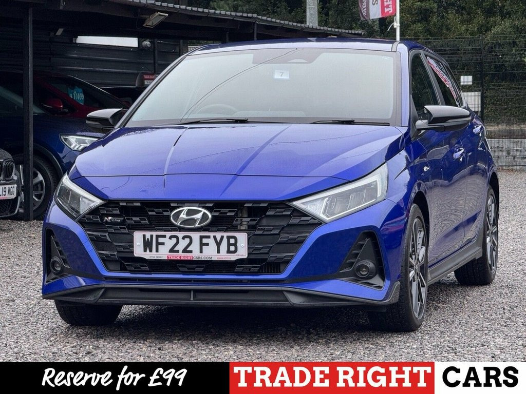 JUST ARRIVED & READY TO DRIVE AWAY! 2022/22 Hyundai i20 1.0 T-GDi MHEV N Line [Nav] finished in Intense Blue. We are pleased to offer this lovely 5 door petrol hatchback. This is the highly desirable and economical 1.0 litre model with a 6 speed manual transmission that offers 118 BHP and over 50 MPG. Insurance group 16/50. It has covered just 49,057 miles with full Hyundai service history (3 stamps) and drives as you would expect. MOT until 8th January 2027 with no advisories. The car is ready to drive away. We will also include a complimentary 12 month AA breakdown cover. One owner from new. Balance of the Hyundai manufacturers warranty which is valid util 6th March 2027. Euro 6 status - ULEZ compliant. A superb example with the sought-after N Line specification. Key features include; LED DRL's, 17" N Line 'Exclusive Design' alloy wheels, bluetooth connectivity, Apple CarPlay, navigation with 10.25" HD touchscreen display, A/C climate control, DAB, heated steering wheel, rear parking sensors with rear camera, selectable driving modes, cruise control with speed limiter, USB and AUX inputs. The full specification list can be found on our website. Advertised below the AutoTrader RRP. Please let us know if you would like any further information or a detailed video sent via WhatsApp. 12V Power Outlet - Front Console, 17in Alloy Wheels - N Line Exclusive Des, 6 Airbags - Front - Front Seat Side and , ABS - Anti-Lock Brake System, Adjustable Head Restraints, Adjustable Intermittent Front Windscreen, Armrest - Front with Storage, Automatic Dimming Rear View Mirror, Automatic Headlights with Dusk Sensor, Automatic Windscreen Wipers with Rain Se, Autonomous Emergency Brake, BlueLink, Bluetooth Connectivity, Body Colour Bumpers, Branded Tyres - Hankook, Bumpers - N line Body Kit, Centre Console Display - 10.25in Touchsc, Childproof Rear Door Locks, Climate Control with Automatic De-Fog Sy, Cruise Control with Speed Limiter, DAB Digital Radio, Daytime Running Lights - LED, Dead
