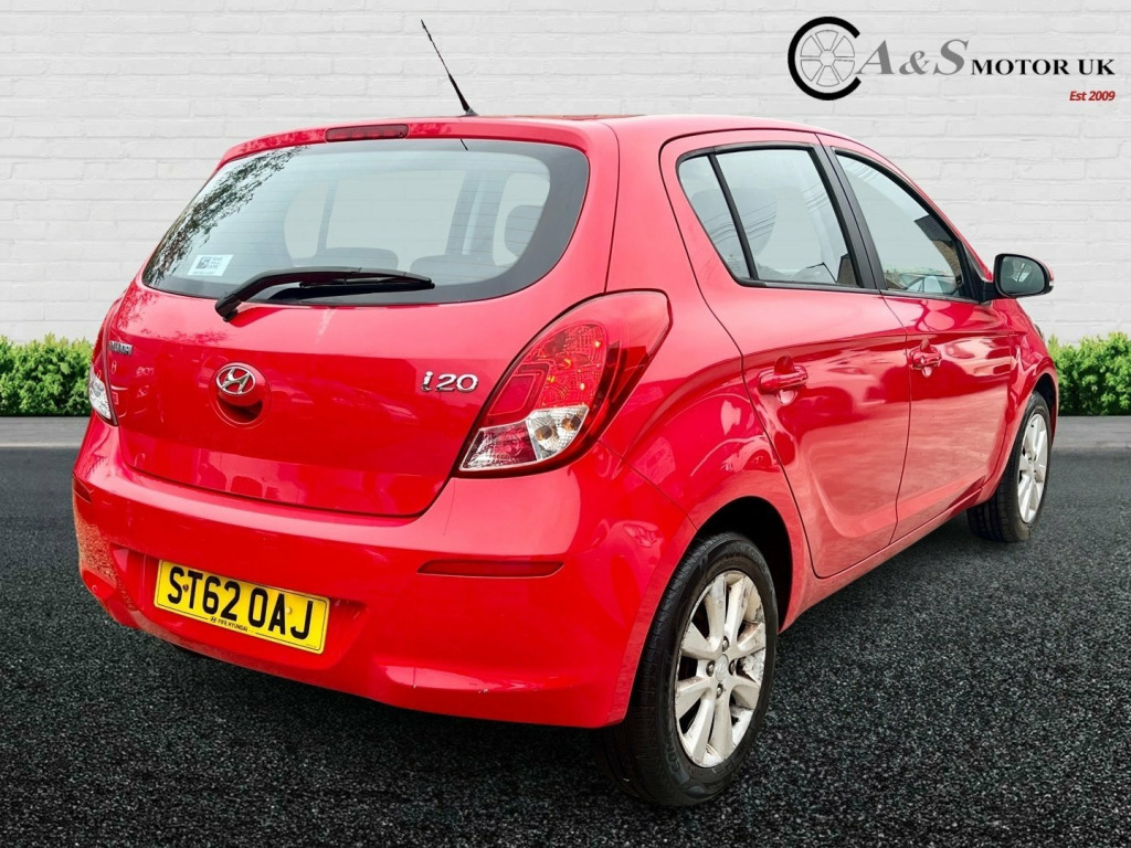 YouTube WALK AROUND VIDEO LINK: *** https://youtu.be/PdvCu196cFw?si=Lc60v8pcBngEWBK9 *** , , ____ This Petrol HYUNDAI I20 1.2 Active is registered in December 2012 with only 48,860 miles and 1 previous keeper,, ____ Red, 2 Keys, Service History (main dealer services and recent service),, ____ ULEZ FREE, ____ MOT 28/08/2026, Insurance Group 5,, ____ Road Tax (£35) Per Year, 85 BHP, EURO 5, , , *** WARRANTY ***, ____ This vehicle comes with a 3-month warranty (upgradable to 6 or 12 months) and will leave our showroom with a full PDI check list for your peace of mind. ____ Secure this vehicle today for as little as a £250 deposit, , , *** STANDARD AND UPGRADED FEATURES *** , AUX, Bluetooth, Trip Computer, Air Conditioning, Anti-Lock Brakes (ABS), Allo Wheels, , *** PLEASE NOTE THIS ADVERTISEMENT IS FOR INFORMATIONAL PURPOSES ONLY *** , The actual car may have additional features or slight variations in the description. Please contact us on 01619414190 for the most accurate information. , *** PAYMENT ***, We accept debit cards for deposits only. Proof of identity is required. We only accept payments on site and do not accept payments over the phone. We can accept bank transfers and Bank Note Payments up to £5000. , +++ TERMS AND CONDITIONS +++ , We trust that you will enjoy many trouble-free miles of motoring and that the vehicle meets with the standard you would expect from a reputable and respected motor dealer such as ourselves. Whilst we endeavour to ensure that every vehicle, we sell meets only the highest possible standards. Unfortunately, on occasion defects do appear on a vehicle subsequent to sale which could not have possibly foreseen. Should you discover any fault with above vehicle shortly after purchase then we would ask that you take the following course of action: 1. Inform us as soon as possible, 2. Try to bring / transport the vehicle to our premises so that we may inspect the alleged problem and arrange a suitable course of action, PLEASE DO NOT TAKE THE VEHICLE TO A THIRD-PARTY GARAGE before allowing us to inspect it, as we will NOT ACCEPT liability for any work done by another garage. it is important to remember that very often what might appear to you as serious fault is anything but, and can accordingly be rectified by our skilled and experienced staff at little or no cost to yourself. We will not accept responsibility for other garages cost unless expressly authorized by ourselves. Please note: We cannot accept liability for wear and tear items or for any defects commensurate with the vehicles age, price and mileage. These terms and conditions are only valid for 3 months from the date of sale. Unless both parties are agreed on different terms, sold as trade sale or sold with faults (customer is informed before purchase).