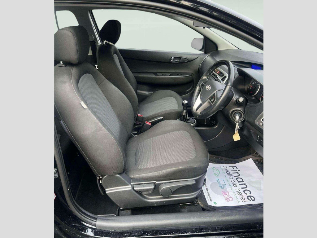 Hyundai i20 1.2 Active petrol manual finished in black with black and grey interior. This ULEZ compliant three door hatchback has covered just 42,050 miles and is ideal for city driving or a first car. It comes with a full-service history and will be supplied with a fresh pre delivery oil service for added peace of mind. The vehicle also benefits from a long MOT. Specification includes rear parking sensors, air conditioning, Bluetooth connectivity, USB and AUX ports and a multifunction steering wheel. Supplied with two keys and presented in clean condition throughout. The i20 offers low running costs, reliability and easy everyday usability. Finance options are available, and a warranty is included. You can secure this car today for just £99. Nationwide delivery can be arranged. View full stock and further details online at www.r8group.co.uk. 15in Alloy Wheels, ABS - Anti-Lock Brake System, Air Conditioning, Airbags - Driver, Airbags - Front Passenger, Airbags - Front Side, Airbags - Full Length Curtain, Bluetooth Connectivity with Voice Recognition, Body Colour Bumpers, Body Colour Door Handles and Mirrors, Childproof Rear Door Locks, Cigarette Lighter and Ashtray, Cup Holders - Front, Deadlocks, Door Mirrors - Electric Heated, EBD - Electronic Brake Force Distribution, ESP - Electronic Stability Programme, Eco Drive Indicator, Exterior Door Handles - Body Coloured, Front Door Pockets, Front Fog Lights, Front Map Reading Lights, Front Passenger Airbag De-Activation Switch, Gear Knob - Leather, Glove Compartment with Cooling Function, Headlights - Electric Beam Levelling, ISOFIX Child Seat Anchorage Points - Rear - Outer Rear, Interior Light, Luggage Compartment Light, One-Touch Indicators, Portable Ashtray, Power Assisted Steering, RDS Radio-CD Player with MP3 Compatibility, Remote Boot Release, Remote Central Locking, Seatbelt Reminder, Seats - Drivers Height Adjustment, Spare Wheel - Temporary, Speakers x6, Split Folding Rear Seats - 60-40, Steering Column - Height and Reach Adjustable, Steering Wheel - Leather, Steering Wheel Audio and Phone Controls, Thatcham Approved Immobiliser, Trip Computer, USB and AUX Connections, VSM - Vehicle Stability Management, Windows - Electric Front with One-Touch Up-Down Control for Driver, Windows - One-Touch Auto Up-Down Control and Anti-Trap for All Windows.