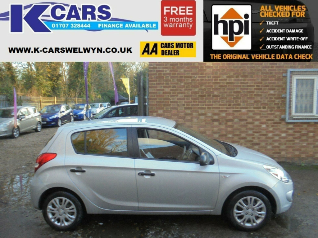 This 2012 Hyundai i20 1.2 Classic Euro 5 5dr Hatchback is currently available for £2,995 in Welwyn Garden City Hertfordshire with Petrol engine and Manual gearbox. For more information or to arrange a viewing, click here to send us an email using form below.