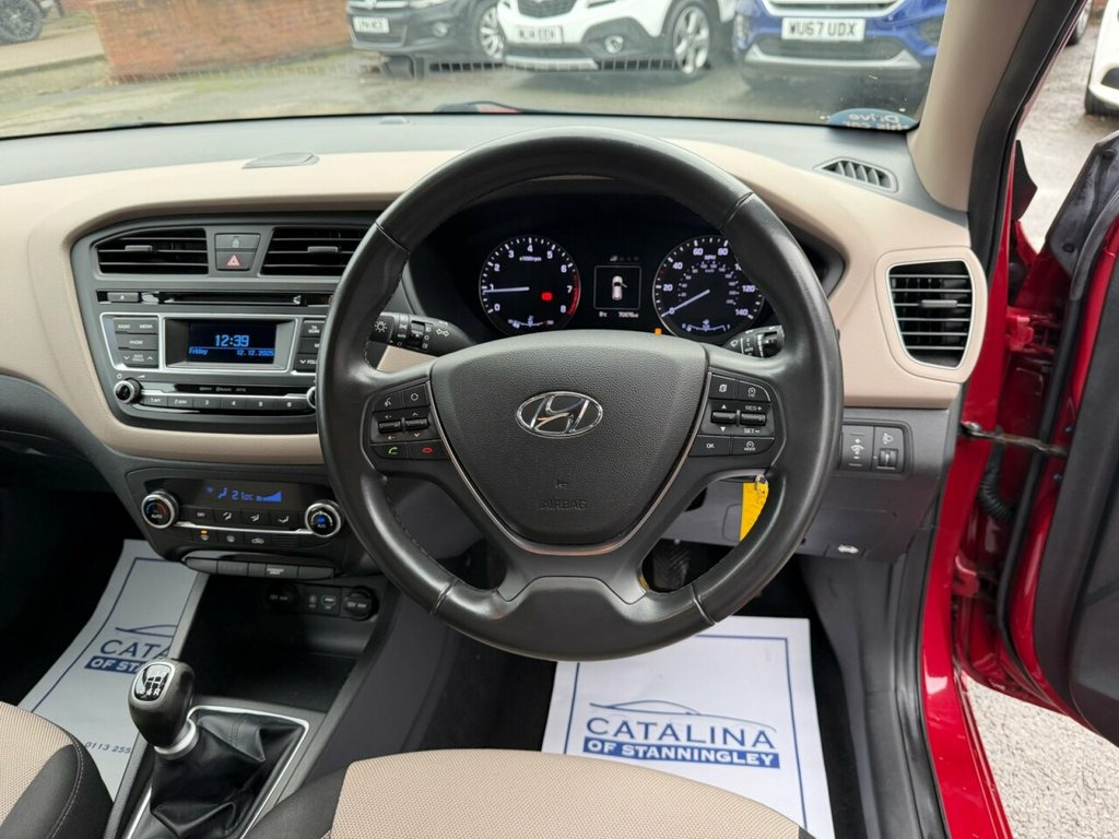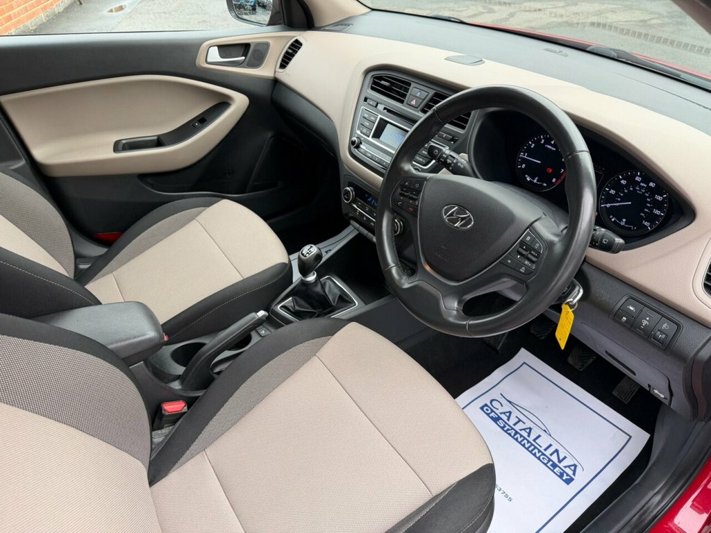 Hyundai i20 1.2 Premium – 11 Services | Low Owners | Excellent Condition Petrol | Manual | Euro 6 | 84 PS | 70,960 Miles | MOT Until 09-12-2026 This Hyundai i20 1.2 Premium is a superbly maintained example of Hyundai's refined and reliable hatchback. With 70,960 miles from new, just two former keepers, and an outstanding 11-service history—including 9 Hyundai main dealer services—it has been cared for to an exceptional standard throughout its life. Powered by the smooth and economical 1.2-litre petrol engine producing 84 PS, it offers comfortable, efficient performance ideal for commuting, city driving, or everyday family use. Its Euro 6 compliance also makes it suitable for modern clean-air zones. Finished in bright red with a cloth interior, this Premium model provides a stylish look paired with excellent comfort and convenience features. A long MOT until December 2026 adds extra peace of mind. A fantastic, well-kept example of the Hyundai i20 Premium — offering reliability, great servicing history, and superb value for money. 2015 HYUNDAI I20 1.2 Premium Hatchback 5dr is offered to you for sale in Pudsey, Leeds, finished in red this HYUNDAI I20 1.2 Premium Hatchback 5dr is one of many handpicked used cars that used car dealer, Catalina of Stanningley, Pudsey, Leeds have available for sale. 12V Power Outlet - Front x2, 16in Alloy Wheels, ABS - Anti-Lock Brake System, Adjustable Head Restraints, Airbags - Curtain, Airbags - Driver, Airbags - Front Passenger, Airbags - Front Side, Armrest - Front with Storage, Automatic De-Fog System for Front Windsc, Automatic Dimming Rear View Mirror, Bluetooth Connectivity, Bottle Holders - Front Centre Console an, Bottle Holders - Rear Door, Childproof Rear Door Locks, Chrome Effect Interior Door Handles, Climate Control, Cruise Control with Speed Limiter, Daytime Running Lights - LED, Deadlocks, Door Handles - Body Coloured, Door Mirrors - Electric Heated and Foldi, Door Mirrors with Integrated Indicators , Driver Seat Height Adjustment, Dri