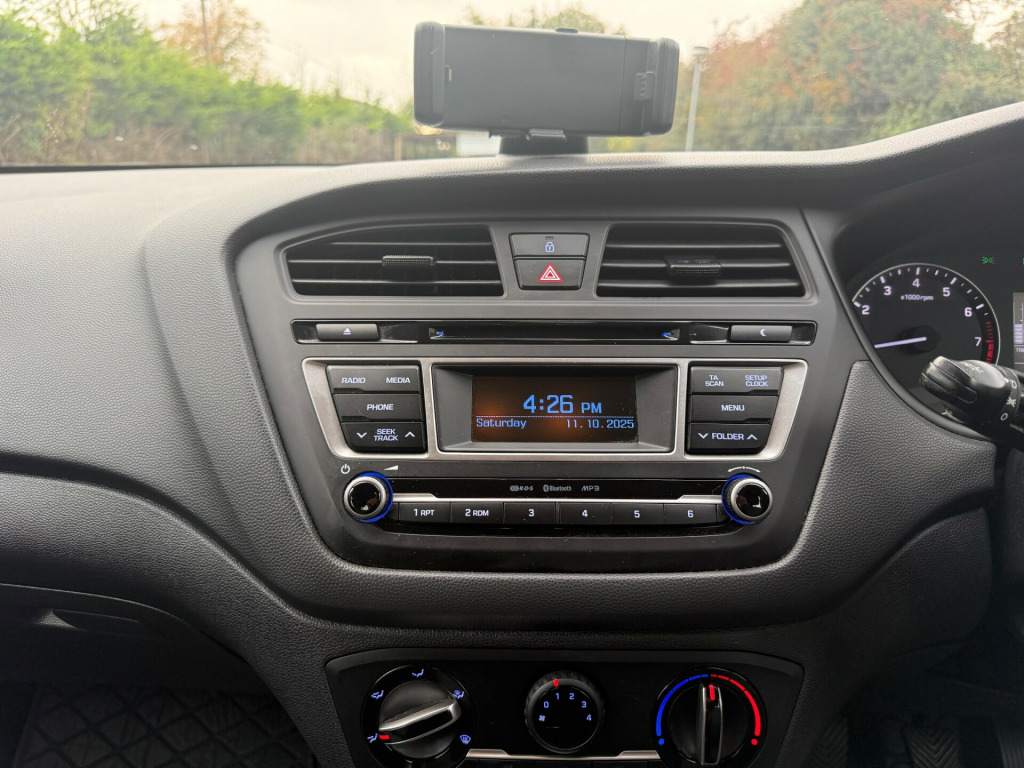 2018 Hyundai i20 SE 1.2L Petrol 2 Owners Full Service History Euro 6 Low Mileage Zero Deposit Finance2 Owners from NewFull Service History - Last serviced 10/10/2025 at 53,414 milesULEZ Compliant Euro 6 MOT TILL 16/oct/2026Clear Vehicle History CheckThis 2018 Hyundai i20 SE is a superb example of a practical and economical hatchback. Powered by a 1.2L Euro 6 petrol engine, it achieves up to 59 mpg while producing low CO? emissions, making it cheaper to run than many similar cars.Key Features Include:•Lane Assistance - added safety on longer journeys•DAB Digital Radio with clear sound quality•Bluetooth Connectivity for calls and music•Air Conditioning•Rear Parking Sensors for easier manoeuvring•Low insurance group - affordable for new and experienced drivers•Spacious interior with practical boot spaceWith its 2 owners, full service history, and clear history check, this i20 provides excellent peace of mind and everyday usability.Warranty & Extras:•Supplied with a 3-month warranty via Warranty Evolution (extended cover available)•Zero deposit finance available at competitive rates•Includes 12 months complimentary AA breakdown cover Visit us at: SHAFFORD Motors, Red Lion Lounge, High Road, Deadman's Cross, SG17 5QQ Call us today: 01462 354948 Email: T.Motorlimitedgmail.com v power outlet - front console, 15in alloy wheels with low rolling resistance tyres, 6 airbags - front - front seat side and curtain, abs - anti-lock brake system, adjustable head restraints, adjustable intermittent front windscreen wipers with aero wiper blade, air conditioning, bluetooth connectivity, bottle holders - front centre console - front and rear doors, childproof rear door locks, cruise control with speed limiter, dab digital radio, daytime running lights, deadlocks, digital clock, door handles interior - satin chrome effect, door mirrors - electric folding - electric adjustment and heated, driver seat height adjustment, door mirrors with integrated indicators - body coloured, esp - electronic stability programme, ess - emergency stop signal, electric power steering, electric windows - front and rear with drivers anti-trap and one-touch up-down control, exterior door handles - body coloured, front fog lights, front map reading lights and sunglasses holder, front seat back pocket - passenger seat, front seatbelt pre-tensioners, glove compartment - illuminated with cooling function, hac - hill-start assist control, isofix child seat anchorage points - rear, immobiliser, impact sensing auto door unlocking, interior light - cabin and luggage compartment, lane departure warning system, leather wrapped gear knob, leather wrapped steering wheel, locking wheel nuts, luggage hooks, luggage net, one-touch indicators, parcel shelf, parking sensors - rear, passenger airbag de-activation switch, perimeter alarm, rear wiper with intermittent function, remote central locking, seatbelt reminder - front and rear, seats - 60-40 split folding rear, smartphone docking station, spare wheel - temporary space saver, speakers - 2 tweeters - 2 front - 2 rear, speed sensitive automatic door locking, steering column - height and reach adjustable, steering wheel audio and phone controls, stereo rds radio-cd player with mp3 compatibility and my music, sun visors with driver and passenger illuminated vanity mirrors, tinted glass, trip computer, tyre pressure monitoring system - tpms, usb and aux connections, vsm - vehicle stability management, variable height boot floor, cloth - black-grey