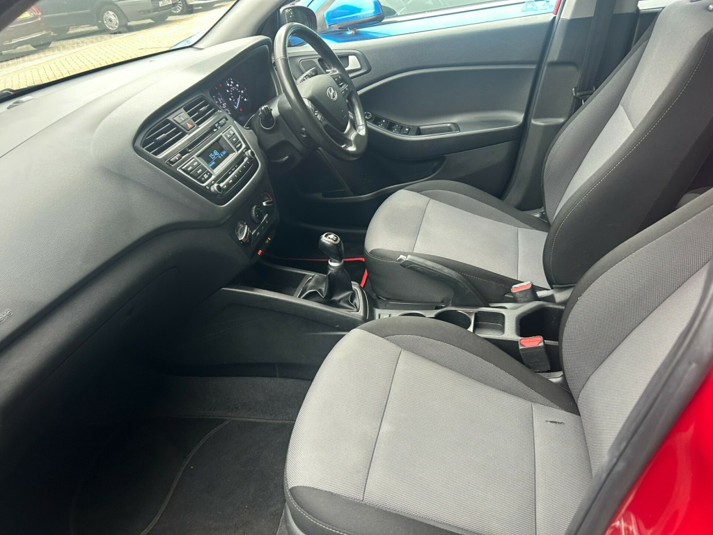 GREAT SERVICE HISTORY, HIGH SPEC INCLUDING AIR CONDITIONING, BLUETOOTH & MORE.This 2017 Hyundai i20 1.2 SE Hatchback with a manual petrol engine and Euro 6 emissions compliance is a reliable choice for a family car. With only 85000 miles on the clock, this 5-door hatchback offers plenty of space for passengers and luggage, boasting 5 seats and a 12V power outlet in the front console. It has modern features including Bluetooth connectivity, a DAB digital radio, and a stereo RDS radio-CD player with MP3 compatibility. The vehicle also includes 2 tweeters and 2 speakers in the front and rear. With its MOT valid until 07/01/2026 and being ULEZ compliant, this Hyundai i20 is a practical, efficient, and stylish vehicle that will serve its owner for many years to come. BY APPOINTMENT ONLY! v power outlet - front console, bluetooth connectivity, dab digital radio, speakers - 2 tweeters - 2 front - 2 rear, stereo rds radio-cd player with mp3 compatibility and my music, usb and aux connections, 15in alloy wheels with low rolling resistance tyres, door mirrors - electric folding - electric adjustment and heated, door mirrors with integrated indicators - body coloured, electric windows - front and rear with drivers anti-trap and one-touch up-down control, exterior door handles - body coloured, locking wheel nuts, spare wheel - temporary space saver, tinted glass, 6 airbags - front - front seat side and curtain, abs - anti-lock brake system, childproof rear door locks, deadlocks, esp - electronic stability programme, ess - emergency stop signal, front seatbelt pre-tensioners, hac - hill-start assist control, isofix child seat anchorage points - rear, immobiliser, impact sensing auto door unlocking, passenger airbag de-activation switch, perimeter alarm, rear wiper with intermittent function, remote central locking, seatbelt reminder - front and rear, speed sensitive automatic door locking, vsm - vehicle stability management, adjustable head restraints, adjustable intermittent front windscreen wipers with aero wiper blade, air conditioning, bottle holders - front centre console - front and rear doors, door handles interior - satin chrome effect, driver seat height adjustment, front map reading lights and sunglasses holder, front seat back pocket - passenger seat, glove compartment - illuminated with cooling function, interior light - cabin and luggage compartment, leather wrapped gear knob, leather wrapped steering wheel, luggage hooks, luggage net, one-touch indicators, parcel shelf, seats - 60-40 split folding rear, smartphone docking station, steering column - height and reach adjustable, steering wheel audio and phone controls, sun visors with driver and passenger illuminated vanity mirrors, variable height boot floor, cruise control with speed limiter, digital clock, electric power steering, lane departure warning system, parking sensors - rear, trip computer, tyre pressure monitoring system - tpms, daytime running lights, front fog lights
