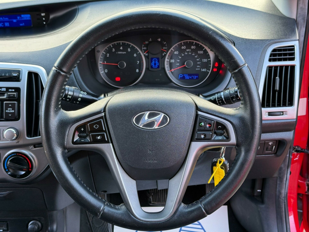 This 2014 Hyundai i20 Active presents a clear vehicle history, offering peace of mind for its next owner. This well maintained example features a 1.4 litre petrol engine and is equipped with air conditioning for your comfort.The Hyundai i20 Active is a practical choice, and this particular model benefits from a low insurance group, indicating it is more economical to insure than many similar vehicles. This makes it an attractive option for a wide range of drivers. uetooth phone connectivity with voice recognition, cloth - grey, air conditioning, rds radio/cd/usb/mp3/music streaming via bluetooth, steering wheel audio and phone controls, speakers x6, electric windows - front and rear with drivers anti-trap and one-touch up-down control, windows - electric front with one-touch up-down control for driver, windows - one-touch auto up-down control and anti-trap for all windows, tinted glass, door mirrors - electric folding door mirrors with integral led indicators, remote central locking with 2 folding keys, computer (drivers information centre), 15in alloy wheels, remote boot release, seats - drivers height adjustment, isofix child seat anchorage points - rear - outer rear, split folding rear seats - 60-40, abs - anti-lock brake system, airbags - driver, airbags - front passenger, airbags - front side, airbags - full length curtain, body colour bumpers, body colour door handles and mirrors, childproof rear door locks, cup holders - front, deadlocks, ebd - electronic brake force distribution, esp - electronic stability programme, exterior door handles - body coloured, front door pockets, front fog lights, front map reading lights, front passenger airbag de-activation switch, gear knob - leather, glove compartment with cooling function, headlights - electric beam levelling, interior light, luggage compartment light, one-touch indicators, power assisted steering, seatbelt reminder, spare wheel - temporary, steering column - height and reach adjustable, steering wheel - leather, thatcham approved immobiliser, vsm - vehicle stability management