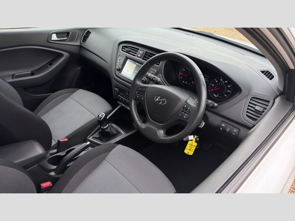 Hyundai I20 1.0 T-GDi Premium Nav 5dr 7" Touch screen navigation, Apple car play/Android Auto, Bluetooth connectivity with voice control, Cruise control + speed limiter, Digital clock, Driver alert system, Front parking sensor, Lane departure warning system, PAS, Rear parking sensor, Rear view camera, Service interval indicator, Supervision cluster, Trip computer, Vehicle Stability Control (VSC), 4 speakers, Auxiliary input socket, DAB Digital radio, Steering wheel mounted audio/telephone controls, USB connection, Adjustable intermittent wipers, Auto dimming rear view mirror, Automatic defog system, Automatic headlights with dusk sensor, Black bodyside mouldings, Body colour door handles, Body colour door mirrors, Body coloured bumpers, Climate comfort windscreen, Cornering headlights, Drivers one touch up/down with anti-trap, Electric adjustable heated door mirrors, Electric folding door mirrors, Electric front windows, Electric rear windows, Front fog lights, High beam assist, LED daytime running lights, LED rear lights, Privacy glass (rear side windows and rear screen), Rain sensor windscreen wipers, Rear wiper, Tinted windows, 12V Accessory socket in centre console, 60/40 split folding rear seat, Adjustable head restraints, Bottle holders, Climate control, Cloth upholstery, Driver/passenger sunvisors and illuminated vanity mirrors, Front armrest with storage box, Front cupholders, Front door pockets, Front map reading lights, Front seat back storage pockets, Height adjustable driver's seat, Height/reach adjustable steering column, Illuminated air conditioned glovebox, Interior courtesy light, Isofix rear child seat preparation, Leather gear knob, Leather steering wheel, Luggage compartment lighting, Luggage hooks, Luggage net, Parcel shelf, Rear headrests, Satin chrome interior door handles, Sunglasses holder, Variable height boot floor, 3x3 point rear seatbelts, ABS/EBD, Active front headrests, Autonomous emergency braking, Childproof rear door locks, Curtain airbags, Driver/Front Passenger airbags, ESP, Fasten seatbelt reminder, Front seatbelt pretensioners, Front side airbags, Height adjustable front seatbelts, Hill start assist control (HAC), Hydraulic Brake Assist (HBA), Passenger airbag deactivate switch, Tyre pressure monitoring system, Deadlocks, Door auto unlock safety system, Immobiliser, Locking wheel nuts, Perimeter alarm, Remote central locking, Speed sensitive auto door locking, 16" alloy wheels, Tyre repair kit