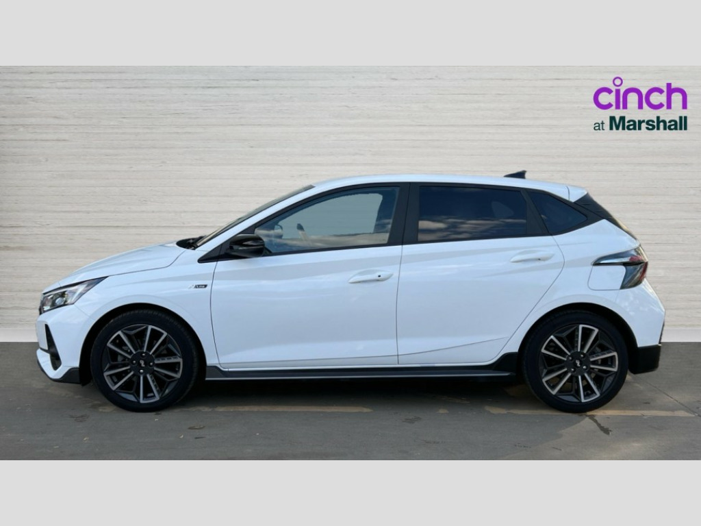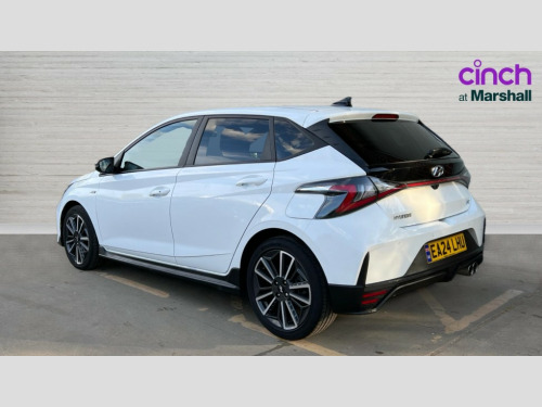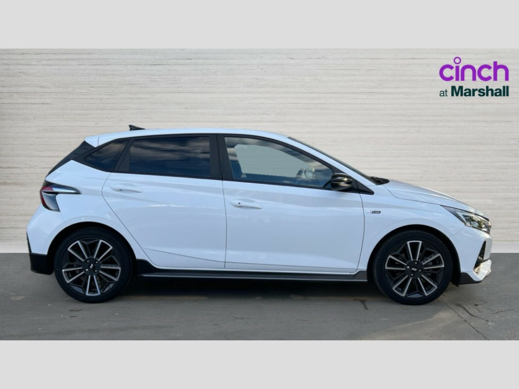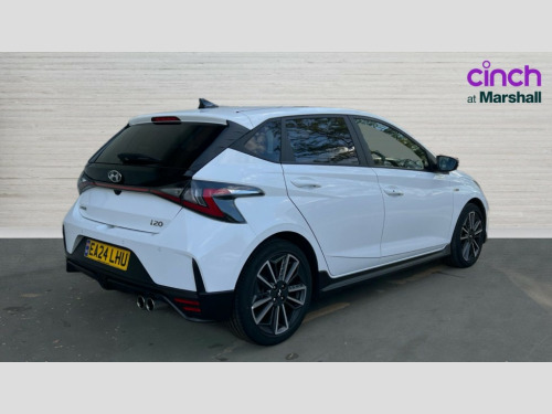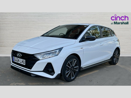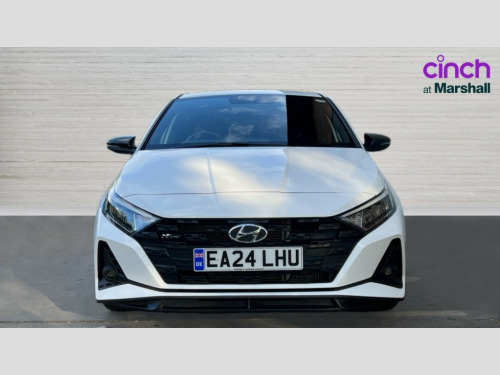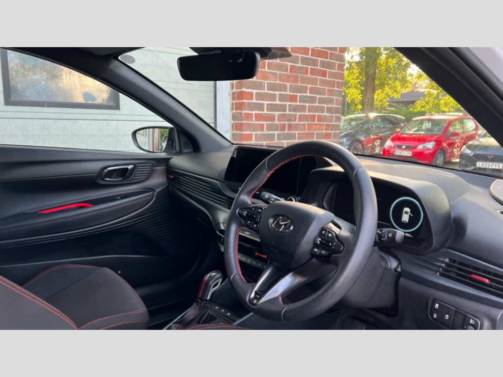 Hyundai I20 1.0T GDi 48V MHD 120 N Line 5dr DCT 10.25" digital supervision cluster, 10.25" touchscreen centre console display satellite navigation including traffic messaging channel, map care and live services, Apple car play/Android Auto, Bluetooth connectivity with voice recognition, Cruise control + speed limiter, Drive mode selector, Driver alert system, eCall emergency call system, Electric power steering, Emergency stop signalling system, Forward collision assist with pedestrian monitoring and cycle detection, Haptic steering, Lane departure warning system, Lane keep assist, Rear parking sensor, Rear view camera, Trip computer, Vehicle Stability Control (VSC), 6 speakers (2 front, 2 tweeters, 2 rear), Auxiliary input socket, DAB Digital radio, Steering wheel mounted audio/telephone controls, USB connection, Adjustable intermittent front windscreen wipers with aero wiper blade, Auto dimming rear view mirror, Automatic defog system for front windscreen, Automatic headlights with dusk sensor, Automatic windscreen wipers with rain sensor, Black window surrounds, Body colour door mirrors with integrated indicators, Body colour exterior door handles, Body coloured bumpers, Drivers one touch up/down with anti-trap, Electric adjustable heated door mirrors, Electric folding door mirrors, Electric front windows, Electric rear windows, Front fog lights, High beam assist, LED rear combination lights, MFR - LED headlights, N line body kit bumpers, N Line exclusive gloss black radiator grille, Privacy glass - Rear windows and tailgate, Rear dual exhaust muffler, Rear roof spoiler with integrated LED brake light, Rear side wing doors, Rear Windscreen Wiper - Intermittent Function, Shark fin antenna, Signature LED daytime running lights integrated into headlamp, Static cornering light, Tinted windows, 12v power outlet - front, 3 seat bench in 2nd row, 60/40 split folding rear seat, Adjustable head restraints, Black roof liner, Blue interior mood lighting, Climate control, Driver/passenger sunvisors and illuminated vanity mirrors, Front armrest with storage box, Front map reading lights, Height adjustable driver's seat, Height/reach adjustable steering column, Isofix rear child seat preparation, Leather wrapped gear knob with N logo, Leather wrapped steering wheel with N logo, Luggage board, Luggage compartment lighting, N Line cloth trim with red stitching, Parcel shelf, Satin chrome interior door handles, Single front passenger seat, 3x3 point rear seatbelts, Anti-lock brake system (ABS), Autonomous emergency braking, Childproof rear door locks, Curtain airbags, Driver/Front Passenger airbags, ESP, Fasten seatbelt reminder, Front seatbelt pretensioners, Front side airbags, Height adjustable front seatbelts, Hill start assist control (HAC), Impact sensing auto door unlocking, Passenger airbag deactivate switch, Tyre pressure monitoring system, Deadlocks, Immobiliser, Locking wheel nuts, Perimeter alarm, Remote central locking, Smart key with keyless entry and engine start/stop button, Speed sensitive auto door locking, Black N line exclusive with red accents, 17" N Line exclusive design alloy wheels, Michelin Tyre brand, Tyre repair kit