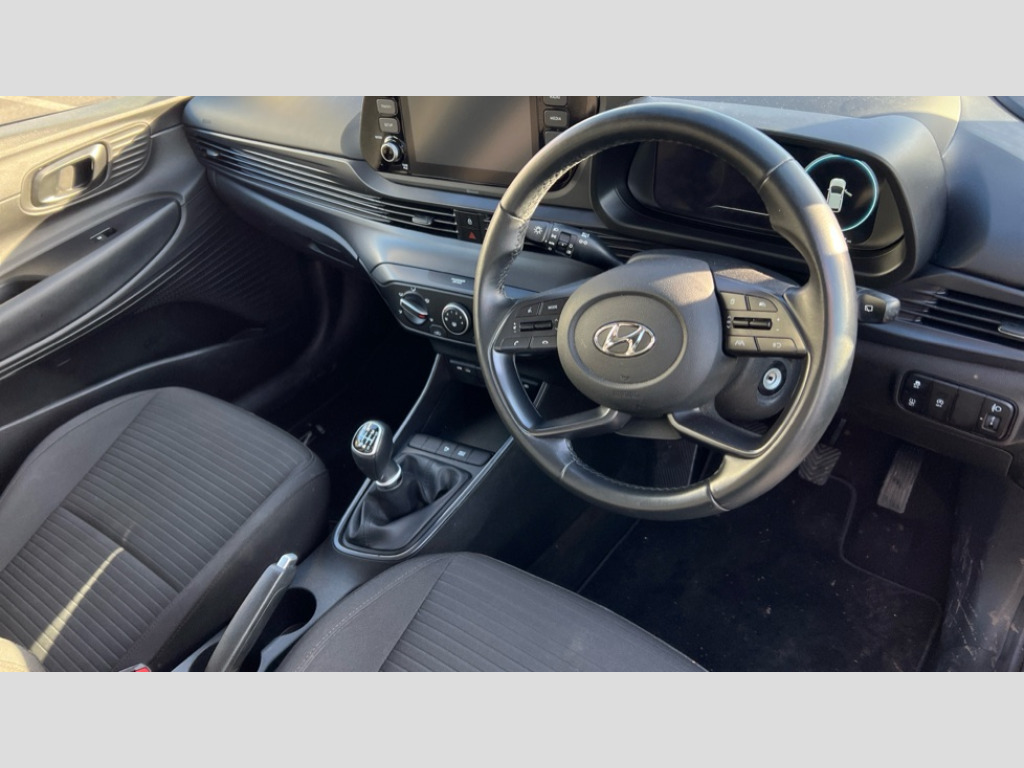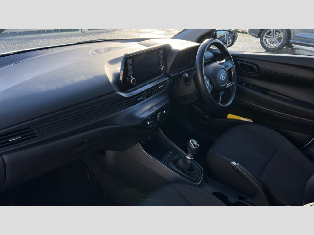 Hyundai I20 1.0T GDi 48V MHD SE Connect 5dr 10.25" digital supervision cluster, 8" Touchscreen centre console display audio with smart device integration and DAB, Apple car play/Android Auto, Bluetooth connectivity with voice recognition, Cruise control + speed limiter, Drive mode selector, Driver alert system, eCall emergency call system, Electric power steering, Emergency stop signalling system, Forward collision assist with pedestrian monitoring and cycle detection, Haptic steering, Lane departure warning system, Lane keep assist, Rear parking sensor, Trip computer, Vehicle Stability Control (VSC), 6 speakers (2 front, 2 tweeters, 2 rear), Auxiliary input socket, Steering wheel mounted audio/telephone controls, USB connection, Adjustable intermittent front windscreen wipers with aero wiper blade, Automatic headlights with dusk sensor, Black window surrounds, Body colour door mirrors with integrated indicators, Body colour exterior door handles, Body coloured bumpers, Bulb type rear combination lights, Drivers one touch up/down with anti-trap, DRL inserts in bumper, Electric adjustable heated door mirrors, Electric front windows, Electric rear windows, Gloss black radiator grille, Halogen projector headlights with static front cornering function, High beam assist, LED daytime running lights, Rear roof spoiler with integrated LED brake light, Rear Windscreen Wiper - Intermittent Function, Shark fin antenna, Tinted windows, 12v power outlet - front, 60/40 split folding rear seat, Adjustable head restraints, Air conditioning, Cloth upholstery, Driver/passenger sunvisors and illuminated vanity mirrors, Front map reading lights, Height adjustable driver's seat, Height/reach adjustable steering column, Isofix rear child seat preparation, Leather gear knob, Leather steering wheel, Luggage compartment lighting, Parcel shelf, Satin chrome interior door handles, 3x3 point rear seatbelts, Anti-lock brake system (ABS), Autonomous emergency braking, Childproof rear door locks, Curtain airbags, Driver/Front Passenger airbags, ESP, Fasten seatbelt reminder, Front seatbelt pretensioners, Front side airbags, Hill start assist control (HAC), Impact sensing auto door unlocking, Passenger airbag deactivate switch, Tyre pressure monitoring system, Deadlocks, Immobiliser, Locking wheel nuts, Perimeter alarm, Remote central locking, Speed sensitive auto door locking, Black mono interior trim, 16" alloy wheels, Michelin Tyre brand, Tyre repair kit