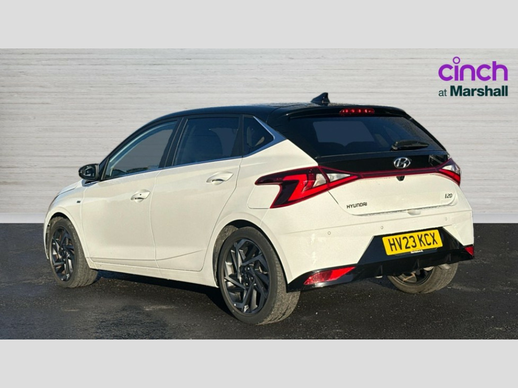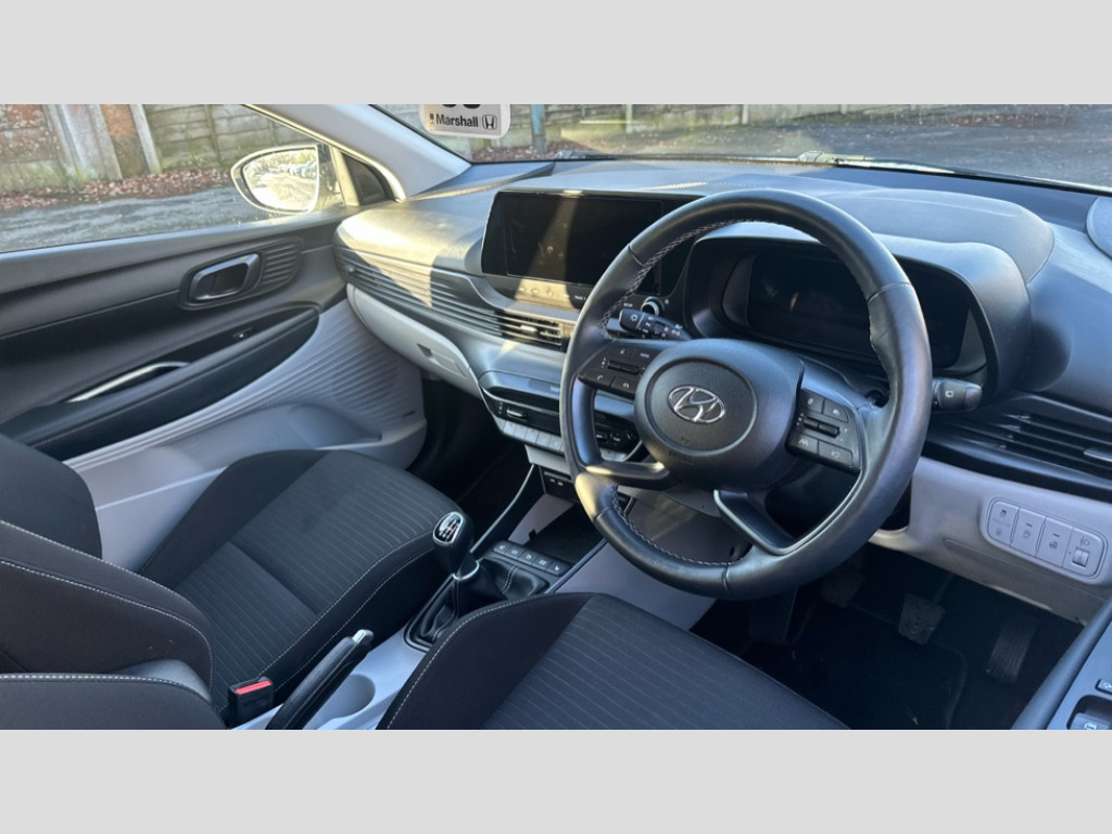 Hyundai I20 1.0T GDi 48V MHD Ultimate 5dr 10.25" digital supervision cluster, 10.25" touchscreen centre console display satellite navigation including traffic messaging channel, map care and live services, Apple car play/Android Auto, Blind spot Collision Warning (BCW), Bluetooth connectivity with voice recognition, Cruise control + speed limiter, Drive mode selector, Driver alert system, eCall emergency call system, Electric power steering, Emergency stop signalling system, Forward collision assist with pedestrian monitoring and cycle detection, Haptic steering, Lane departure warning system, Lane follow assist, Lane keep assist, Rear parking sensor, Trip computer, Wireless charging pad, Vehicle Stability Control (VSC), Auxiliary input socket, BOSE Premium Sound System with Subwoofer, DAB Digital radio, Steering wheel mounted audio/telephone controls, USB connection, Adjustable intermittent front windscreen wipers with aero wiper blade, Auto dimming rear view mirror, Automatic defog system for front windscreen, Automatic headlights with dusk sensor, Automatic windscreen wipers with rain sensor, Body colour exterior door handles, Body coloured bumpers, Chrome window surround, Drivers one touch up/down with anti-trap, Electric adjustable heated door mirrors, Electric folding door mirrors, Electric front windows, Electric rear windows, Front fog lights, Gloss black radiator grille, High beam assist, LED rear combination lights, MFR - LED headlights, Privacy glass - Rear windows and tailgate, Rear roof spoiler with integrated LED brake light, Rear side wing doors, Rear Windscreen Wiper - Intermittent Function, Shark fin antenna, Signature LED daytime running lights integrated into headlamp, Static cornering light, Tinted windows, 12v power outlet - front, 3 seat bench in 2nd row, 60/40 split folding rear seat, Adjustable head restraints, Blue interior mood lighting, Climate control, Cloth upholstery, Driver/passenger sunvisors and illuminated vanity mirrors, Front armrest with storage box, Front map reading lights, Heated front seats, Heated steering wheel, Height adjustable driver's seat, Height/reach adjustable steering column, Isofix rear child seat preparation, Leather gear knob, Leather steering wheel, Luggage compartment lighting, Parcel shelf, Satin chrome interior door handles, Single front passenger seat, 3x3 point rear seatbelts, Anti-lock brake system (ABS), Autonomous emergency braking, Childproof rear door locks, Curtain airbags, Driver/Front Passenger airbags, ESP, Fasten seatbelt reminder, Front seatbelt pretensioners, Front side airbags, Height adjustable front seatbelts, Hill start assist control (HAC), Impact sensing auto door unlocking, Passenger airbag deactivate switch, Tyre pressure monitoring system, Deadlocks, Immobiliser, Locking wheel nuts, Perimeter alarm, Remote central locking, Smart key with keyless entry and engine start/stop button, Speed sensitive auto door locking, 17" Alloy wheels, Michelin Tyre brand, Tyre repair kit