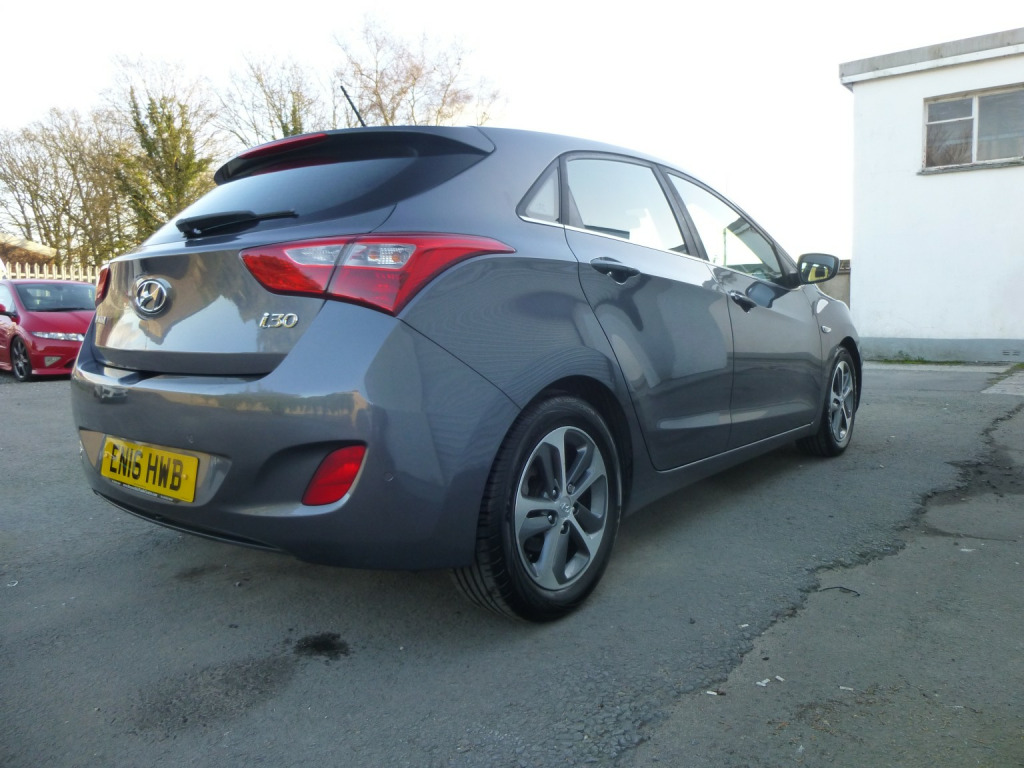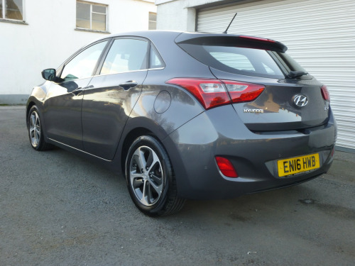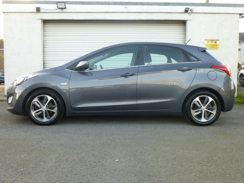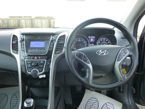 hyundai i30 1.4 se bluedrive edition Makes an impression,Refined touches and distinctive fluidic styling make it worthy of your admiration,The striking exterior features a redesigned hexagonal grille as its bold signature centrepiece,while LED daytime running lights add an extra touch of class,Flowing lines running from back to front are punctuated by a range of eye catching wheel designs which complete its cultured looks, Bluetooth Connectivity,RDS Radio-CD Player with MP3 Compatibility,USB and AUX Connections,Cruise Control with Speed Limiter,Parking Sensors in Rear bumper,Trip Computer,Tyre Pressure Monitoring System [TPMS],Voice Control,16 inch Alloy Wheels machine finished,Electric Adjustment and Heated Door Mirrors,Electric Windows x4,Radiator Grille Type A Body Coloured cosmic grey,Rear Spoiler,Solar Glass with Shade Band,Daytime Running Lights [LED],Front Fog Lights,Headlights with Follow Me Home Function,HighMounted Brake Light,Air Conditioning,front and rear centre Armrests,Automatic Dimming Rear View Mirror,Chrome Effect Interior Door Handles,Driver Seat Height Adjustment,Front Map Reading Lights,Front Seat Back Pockets,leather Gear Knob,Glove Compartment with Cooling Function,Head Restraints Front and Rear with Vertical Adjustment,Ignition Socket Illumination,Passenger Seat manual Height Adjustment,Pollen Filter,60-40 Split Folding Rear seats,Drivers seat with Electric Lumbar Support,leather Steering Wheel,Steering Wheel Audio and Phone Controls,Sun Visors with Vanity Mirrors and Illumination,Sunglasses Holder,Under Floor Storage in Boot,Power Assisted Steering,[ABS] Anti-Lock Brake System,[BAS] Brake Assist System,[EBD] Electronic Brake Force Distribution,[ESP] Electronic Stability Programme,[ESS] Emergency Stop Signal,Flex Steering,Front Passenger Airbag De-Activation Switch,[HAC] Hill-Start Assist Control,ISOFIX Child Seat Anchorage Points on Rear - Outer seats,Remote Central Locking,Thatcham Approved Immobiliser,[VSM] Vehicle Stability Management,6 spd manual transmission,, 104,000 miles with full service history,[2 x keys],looks and drives superb,fully colour coded in hyundais [Z3G] MICRON GREY METALLIC, , , , , , , , , , hpi report available on all vehicles, ,
