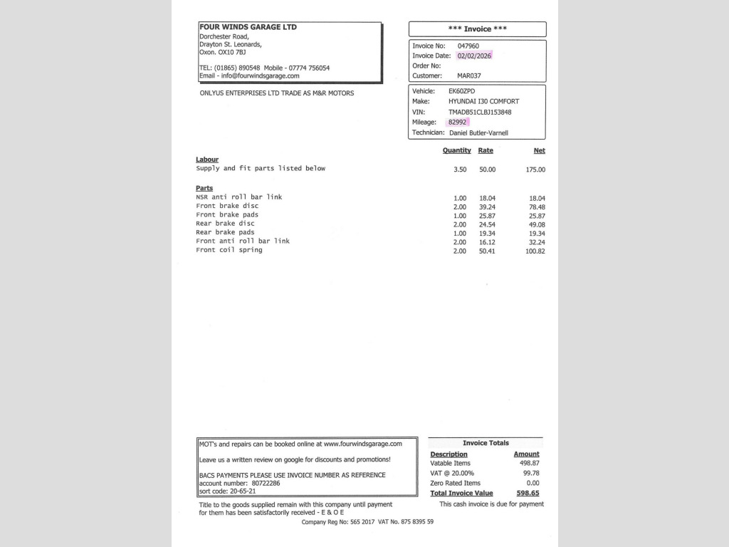 9 SERVICES (7 MAIN DEALER).All major and minor defects, along with all MOT advisories, have been fully rectified.The attached invoice(s) confirm the work.5-day fully comprehensive driveaway insurance are available , until they find the right long-term plan.This vehicle has good bodywork, excellent interior, and good condition BEAUTIFUL EXAMPLE. Full Valet, HPI Clear M&R MOTORS is proud to offer this beautiful Hyundai i30 1.4 Comfort Hatchback 5dr Petrol Manual Euro 5 (108 bhp). It makes driving it a pleasure, too. drive way insurance are available and A FRESH SERVICE if last service over 1 year OR 10K MILEAGE AND NEW MOT WILL BE PROVIDED AS IF LESS THEN 6 MONTHS ) Great condition for the age; very well looked after. The car comes with a 3-month warranty. The car looks and drives brilliantly, is very economical, and is cheap to run! First to see, first to buy! We offer a totally contactless collection and free delivery within 20 miles. Nationwide delivery is also available at competitive rates. Don’t miss out! Get in touch now! We ARE OPEN Monday TO Saturday from 9 a.m. to 5 p.m.; to arrange an appointment, call 07815554001. Should you have any questions before coming to see us, don't hesitate to call us, and we will get back to you as soon as we can. Extended warranties are available and finance can be applied via through our website Customers can now benefit from our Click and Collect option. Use our Online facility to part-exch Customers can now benefit from our Click and Collect option. Use our online facility to part-exchange, apply for finance, and reserve your next car, all completely online. Trust our cars, trust our people, and trust our price package. All our vehicles have a minimum 6-month MOT, as we are AA Dealer Promise members and welcome any vehicle inspection before you buy. All our vehicles come with a 3-, 6-, or 12-month warranty, with 12-month AA breakdown coverage included. The showroom was cleaned and sanitised. Call our showroom at 01865 366426 to arrange a viewing or test drive. Many more vehicles are available at www.mandrmotors.co.uk. 12V Power Outlet, 16in Alloy Wheels, ABS - Anti-Lock Brake System, Adjustable Head Restraints, Air Conditioning, Airbags - Driver, Airbags - Front Passenger, Airbags - Front-Front Side and Full Length Curtain, Airbags - Full Length Curtain, Airbags - Side, Alarm, BAS - Brake Assist System, CD/Radio, Childproof Rear Door Locks, Cup Holders - Front, Door Mirrors - Electric Folding Door Mirrors with Integral LED Indicators, EBD - Electronic Brake Force Distribution, ESP - Electronic Stability Programme, Electric Front Windows, Electric Power Steering, Electric Windows - Front and Rear with Drivers Anti-Trap and One-Touch Up-Down Control, Front Fog Lights, Front Passenger Airbag De-Activation Switch, Gear Knob - Leather, Height Adjustable Steering Column, ISOFIX Child Seat Anchorage Points - Rear - Outer Rear, Passenger Airbag De-Activation Switch, RDS Radio-CD Player with MP3 Compatibility, Remote Central Locking, Seats - Drivers Lumbar Adjustment, Side Impact Bars, Spare Wheel - Temporary, Speed Sensitive Automatic Door Locking, Split Folding Rear Seats - 60-40, Steering Wheel - Audio Controls, Steering Wheel - Leather, Thatcham Approved Immobiliser, Traction Control, Trip Computer, USB and AUX Connections. Full service history