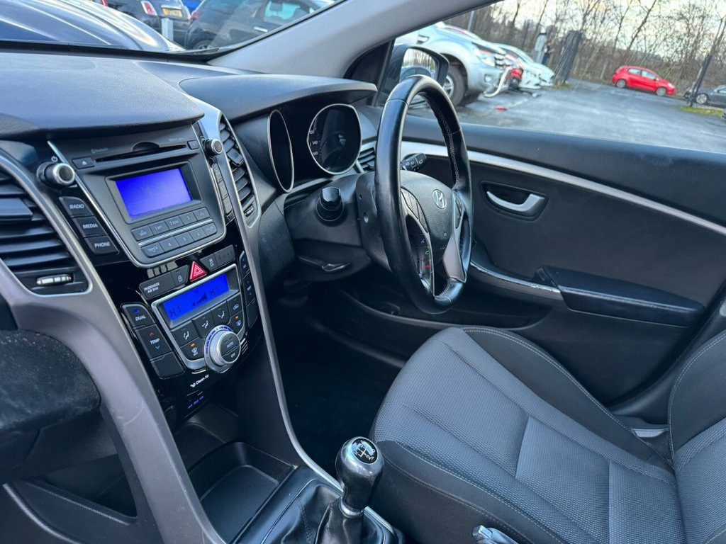 Here is a lovely example of our Hyundai i30 SE Edition - which comes wit the full SE pack which includes alloy wheels, Bluetooth, USB & AUX ports, Cruise Control with Speed Limiter, Hill-Start Assist, parking sensors, leather steering wheel, Voice Control, a free 3 month warranty & a brand new full 12 month MOT with NO advisories. We do a FREE Experian HPI Check on every vehicle. We have a huge selection of over 250 cars to choose from & are open 7 days a week. WARRANTY Every car comes with a 3 month parts & labour warranty that can be extended upon request. MOT We complete a full 12 month MOT that will be carried out at the point of sale. You don't have to worry about the previous MOT as we will do a fresh one for you & complete any previous or current advisories. HPI All of our cars have a full HPI check. If any of our cars are showing on finance or any mileage discrepancies then just give us a call as usually Experian just forget to update their system which can always be rectified. VOSA All of our cars have an up to date VOSA history check. PART EXCHANGE We can take your old car in as part exchange no matter what the condition. LOCATION We are situated just opposite the entrance to the old Federation Brewery in Dunston, just off the A1 Motorway, just to the rear of the Metrocentre in Gateshead. PHOTOS Please visit our website for more photos & a video. We can do a live viewing of any car. PAYMENT We accept all major debit card 12V Power Outlet - Front x2, 12V Power Outlet - Luggage Compartment, 16in Alloy Wheels, ABS - Anti-Lock Brake System, Air Conditioning, Airbags - Driver, Airbags - Front Passenger, Airbags - Front Side, Airbags - Full Length Curtain, Alarm, Armrest - Front Centre with Storage Comp, Automatic De-Fog System for Front Windsc, BAS - Brake Assist System, Bluetooth Connectivity with Voice Recogn, Childproof Rear Door Locks, Chrome Effect Interior Door Handles, Chrome Exterior Beltline Trim, Cloth Door Centre Trim, Cruise Control with Speed Limiter, Cup Holders - Front x2, Daytime Running Lights - LED, Deadlocks, Door Mirrors - Body Coloured, Door Mirrors - Gloss Black Electric Fold, EBD - Electron