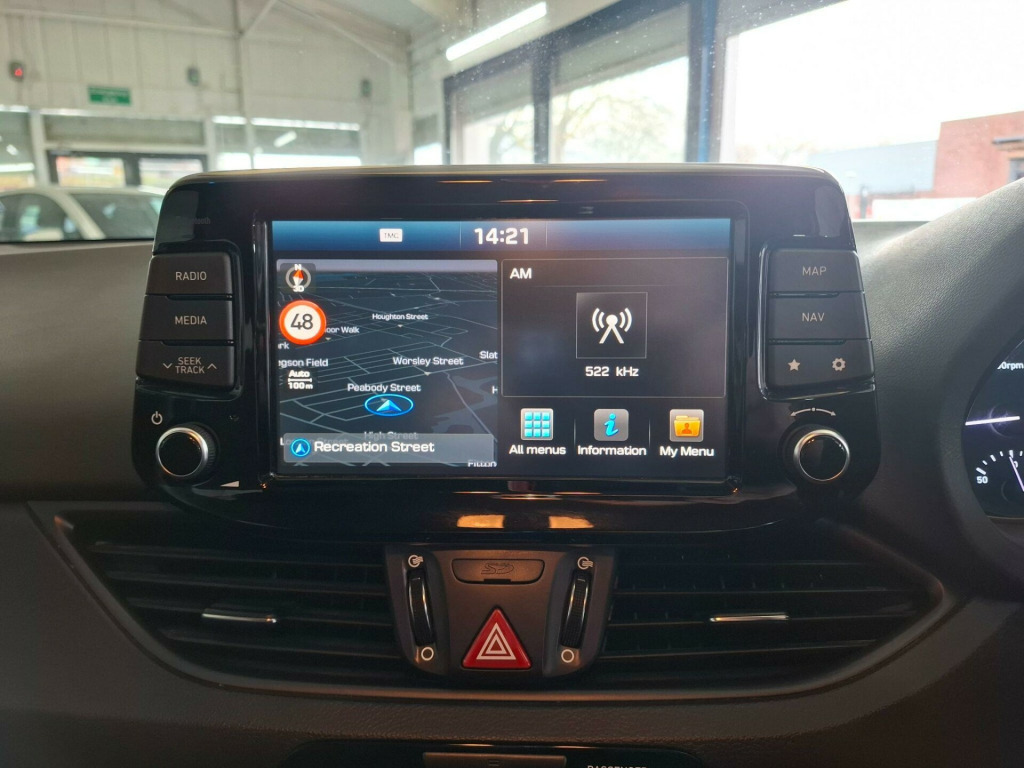 ** VIEWING BY APPOINTMENT ONLY ** FULL SERVICE HISTORY, HPI CLEAR WITH FULL REPORT, ONLY ONE OWNER FROM NEW, WILL. COME WITH A FULL 12 MONTHS MOT, FINANCE AVAILABLE, PART EXCHANGE WELCOME, ALL MAJOR DEBIT CARDS ACCEPTED, MORE MAKES AND MODELS IN STOCK.. This 2018 Hyundai i30 T-GDi SE Nav boasts a single owner from new, offering excellent provenance. This well equipped hatchback features a responsive 1.4 litre petrol engine, meeting Euro 6 emission standards. Inside, you'll find seamless phone integration with both Apple CarPlay and Android Auto, alongside a convenient wireless phone charging pad. Navigating tight spots is made easier with the rear camera and guidance system, while automatic headlights with a dusk sensor ensure optimal visibility.The Hyundai i30 T-GDi SE Nav delivers impressive performance with a 0 to 62mph acceleration time of just 8.9 seconds. Its fuel economy is a notable highlight, achieving up to 52 miles per gallon, which indicates its efficiency compared to similar vehicles. Furthermore, this model offers generous boot space, making it a practical choice for everyday use and longer journeys.. 12V Power Outlet - Front Console and Luggage Compartment, 16in Alloy Wheels, 8in Touchscreen Satellite Navigation including Traffic Messaging Channel - Mapcare and Live Services, ABS - Anti-Lock Brake System, AEB - Autonomous Emergency Brake with Forward Collision Warning System, Adjustable Intermittent Front Windscreen Wipers with Aero Wiper Blade, Air Conditioning, Airbags - Front - Front Side and Curtain Airbags, Alarm and Immobiliser, Armrest - Front with Storage, Armrest - Rear Centre with Cup Holders, Automatic Dimming Rear View Mirror, Automatic Headlight Follow Me Home Function, Automatic Headlights with Dusk Sensor, Bluetooth Connectivity, Body Colour Bumpers, Centre Console Storage, Childproof Rear Door Locks, Cruise Control with Speed Limiter, Cup Holders - Front, Curtain Airbag Rollover Sensor, DAB Digital Radio, Daytime Running Lights - LED, Deadlocks, Digital Clock, Door Mirrors - Electric Folding, Door Mirrors - Electric Folding - Electric Adjustment and Heated, Door Mirrors with Integrated Indicators - Body Coloured, Door Pockets - Front and Rear, Driver Attention Alert - DAA, Drivers Seat Height Adjustment - Manual, ESS - Emergency Stop Signal, Electric Windows - Front and Rear with Anti-Trap Mechanism and One Touch Control, Electronic Stability Control - ESC, Exterior Door Handles - Body Coloured, Five Year Annual Vehicle Health Checks, Front Head Restraints - Vertical and Horizontal Adjustment, Front Passenger Airbag De-Activation Switch, Front Static Cornering Lights, Front and Rear Fog Lights, Glove Compartment, HAC - Hill-Start Assist Control, Halogen Projector Headlights with Static Front Cornering Function, Head Restraints - Active Front, Headlights - Manual Beam Levelling, ISOFIX Child Seat Anchorage Points - Rear - Outer Rear, Ignition Socket Illumination, Indicator Lights - Door Mirror, Interior Door Handles - Chrome Effect, Interior Front Map Reading Light and Sunglasses Holder, Interior Light - Front - Rear and Luggage Compartment, Lane Departure Warning System with Lane Keeping Assist, Leather Wrapped Steering Wheel and Gear Knob, Locking Wheel Nuts, Motor Driven Power Steering - MDPS, Parking Brake - Manual, Parking Sensors - Rear, Parking System - Rear Camera and Guidance System, Passenger Seat Height Adjustment - Manual, Passenger Seat Manual Adjustment, Phone Connection - Android Auto, Phone Connection - Apple CarPlay, Radiator Grille - Black with Chrome Inserts, Rear Spoiler with Integrated LED Brake Light, Rear Windscreen Wiper - 1 Speed Non Intermittent, Remote Central Locking, Seatbelt Reminder - Front, Seats - 60-40 Split Folding Rear, Seats - Drivers Electric Lumbar Support, Shark Fin Antenna, Ski Through, Smart High Beam, Space Saver Emergency Spare Wheel, Speakers - 2 Tweeters - 2 Front - 2 Rear, Speed Sensitive Automatic Door Locking, Steering Wheel with Audio - Phone and Cruise Controls, Stereo RDS Radio with MP3 Compatibility, Sun Visors with Driver and Passenger Illuminated Vanity Mirrors, Sunglasses Holder, Tinted Glass with Shade Band, Trip Computer, Tyre Pressure Monitoring System with Individual Tyre Display, USB Connection - Centre Console, Variable Height Boot Floor, Window Surround - Black, Windscreen Washer Fluid Sensor and Warning Indicator, Wireless Phone Charging Pad.